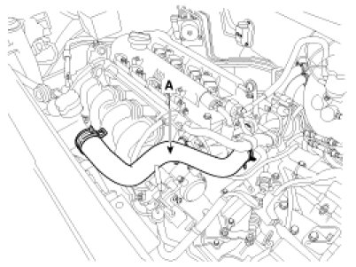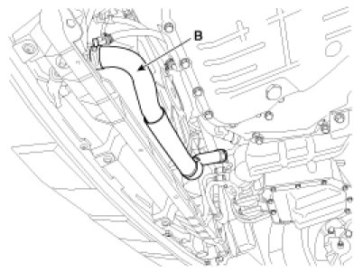 7. Remove the radiator upper hose (A) and lower hose (B).