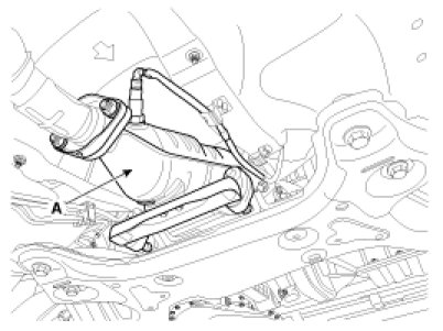 16. Disconnect the ground cable (A) and then, remove the transaxle mounting bracket (B).