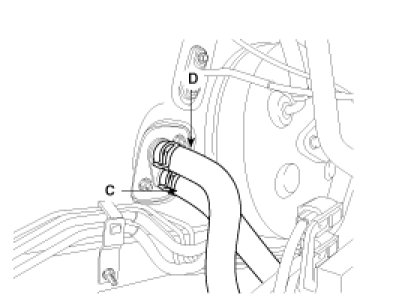 5. Disconnect the inlet (C) and outlet (D) heater hoses from the heater unit.