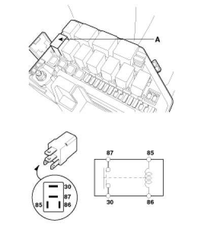 1. Remove the horn relay (A) from the engine room relay box.