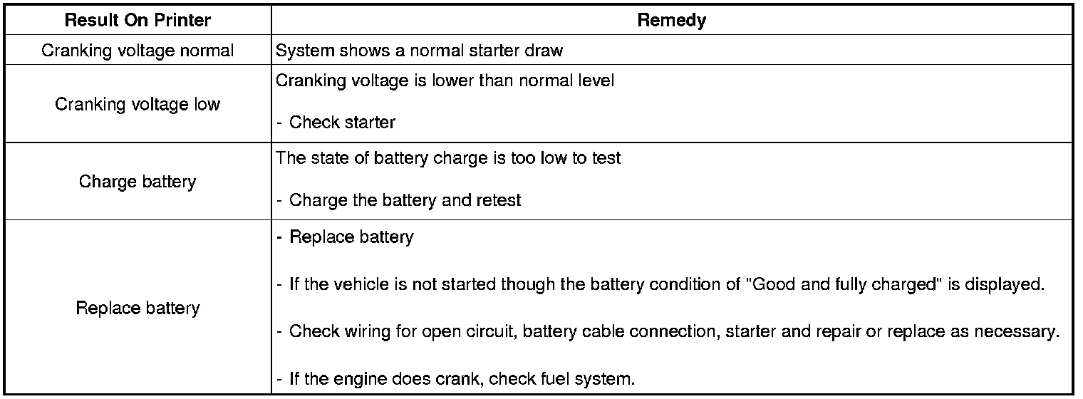 Take a relevant action according to the test results by referring to the starter test results as given below.