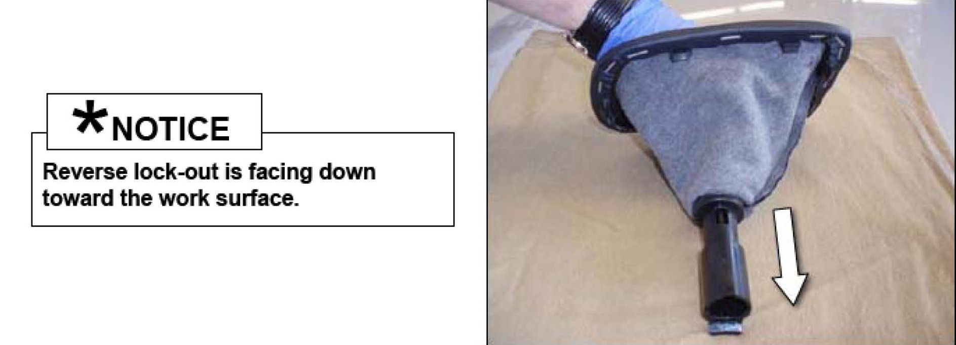 10. Install shifter knob by screwing down in a clock-wise direction. Make sure the orientation is correct.