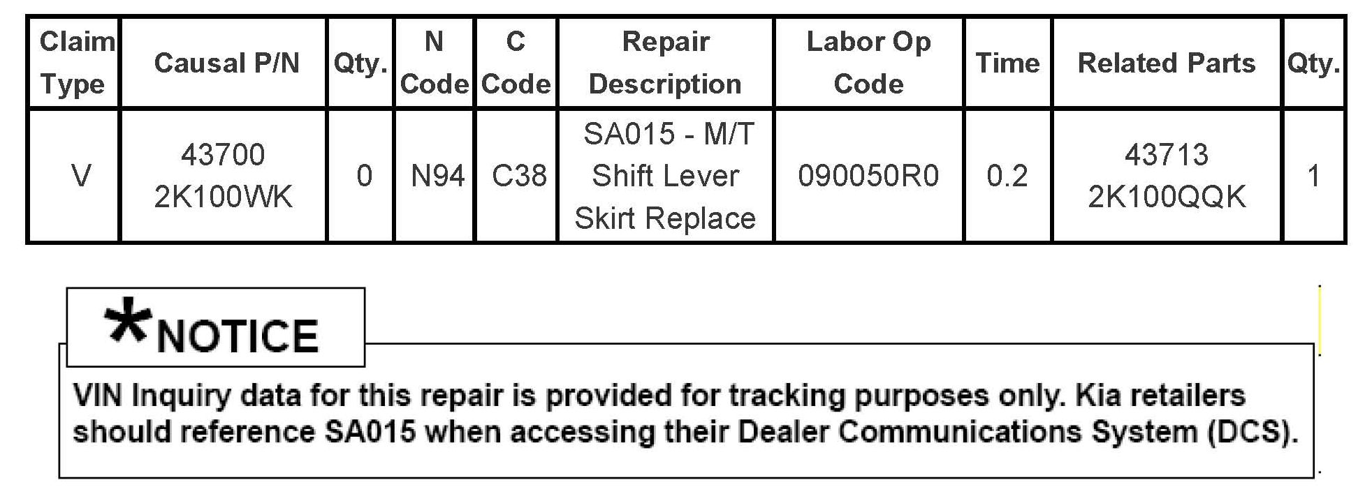 Campaign SA015 - M/T Shifter Skirt Replacement
