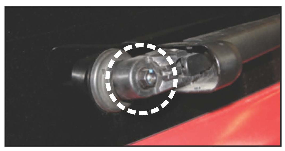 1. Mark wiper arm location using a paint pen, and then remove the rear wiper arm assembly to gain access to the rubber grommet.
