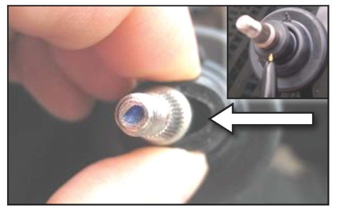 2. Press the top of the grommet with two fingers to make the opening bigger as shown in the photo, and then apply Multemp AC-J automotive grease/3M Silicone Paste to the inner surface area of the grommet through the opening as indicated by the arrow.
