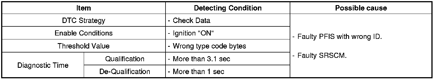 The SRSCM sets DTC B1335 if PFIS with wrong ID is detected.