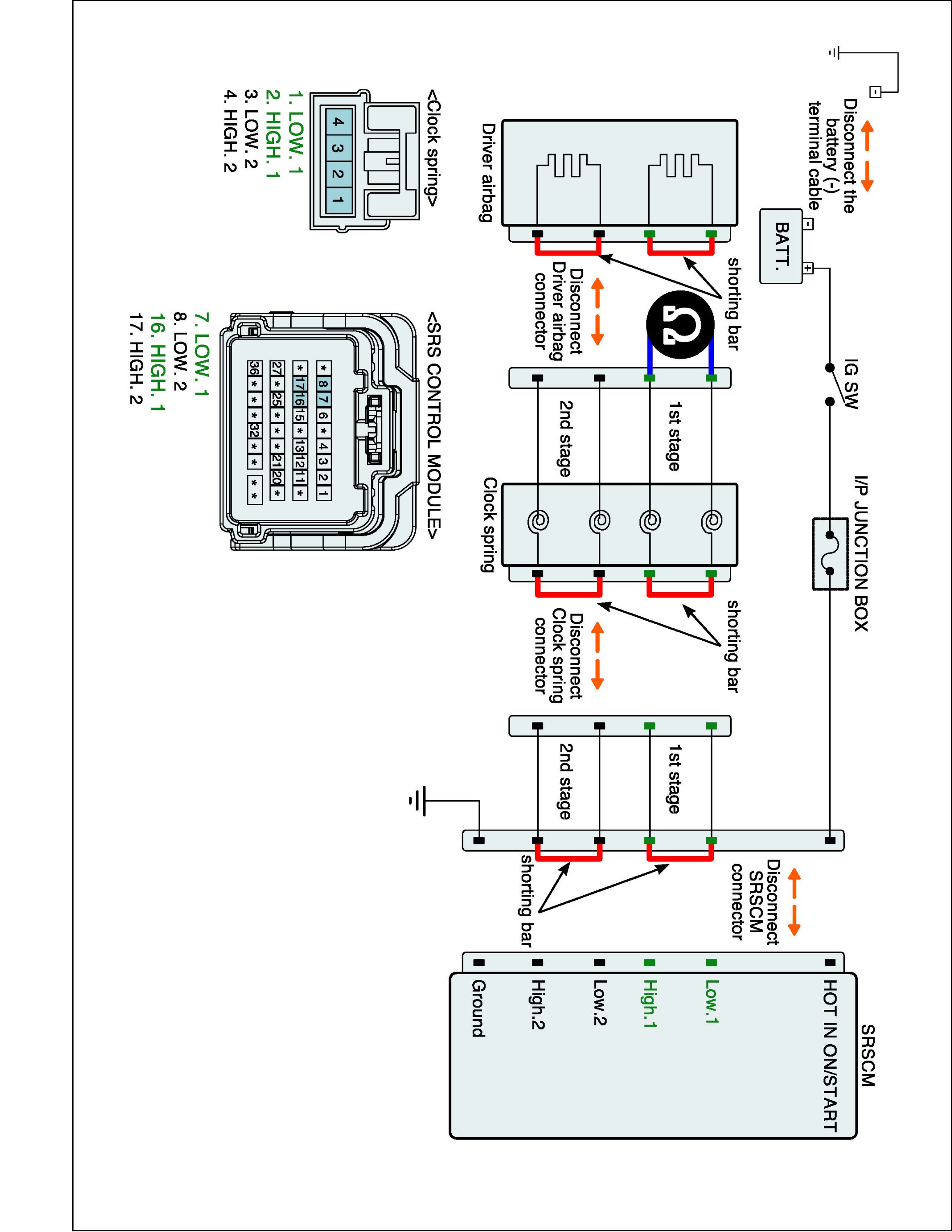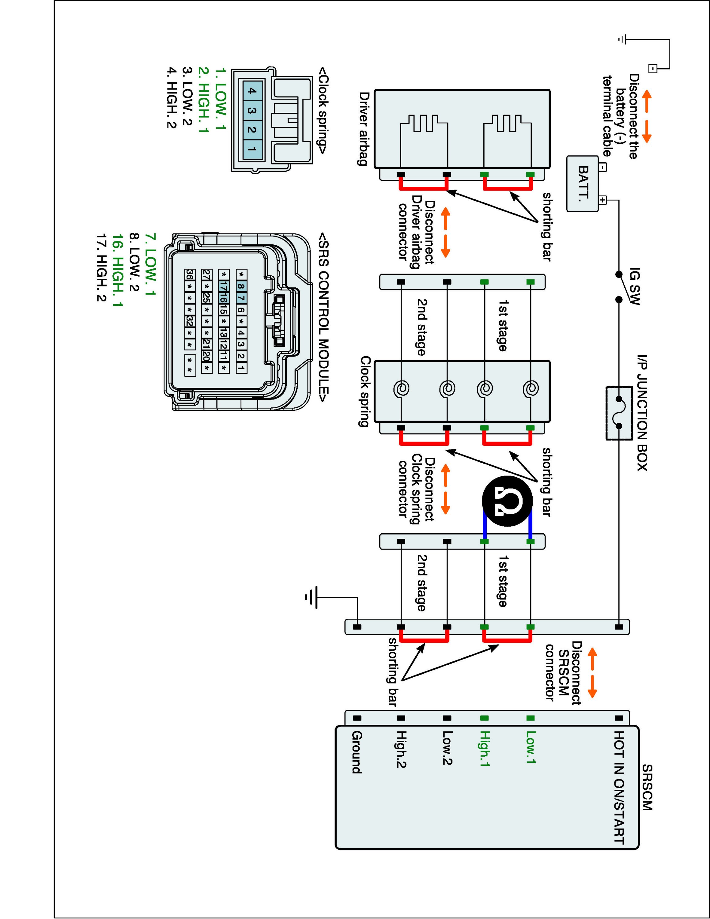 4. Measure resistance between terminal "Low.1" and "High.1" of the Clock Spring harness connector.