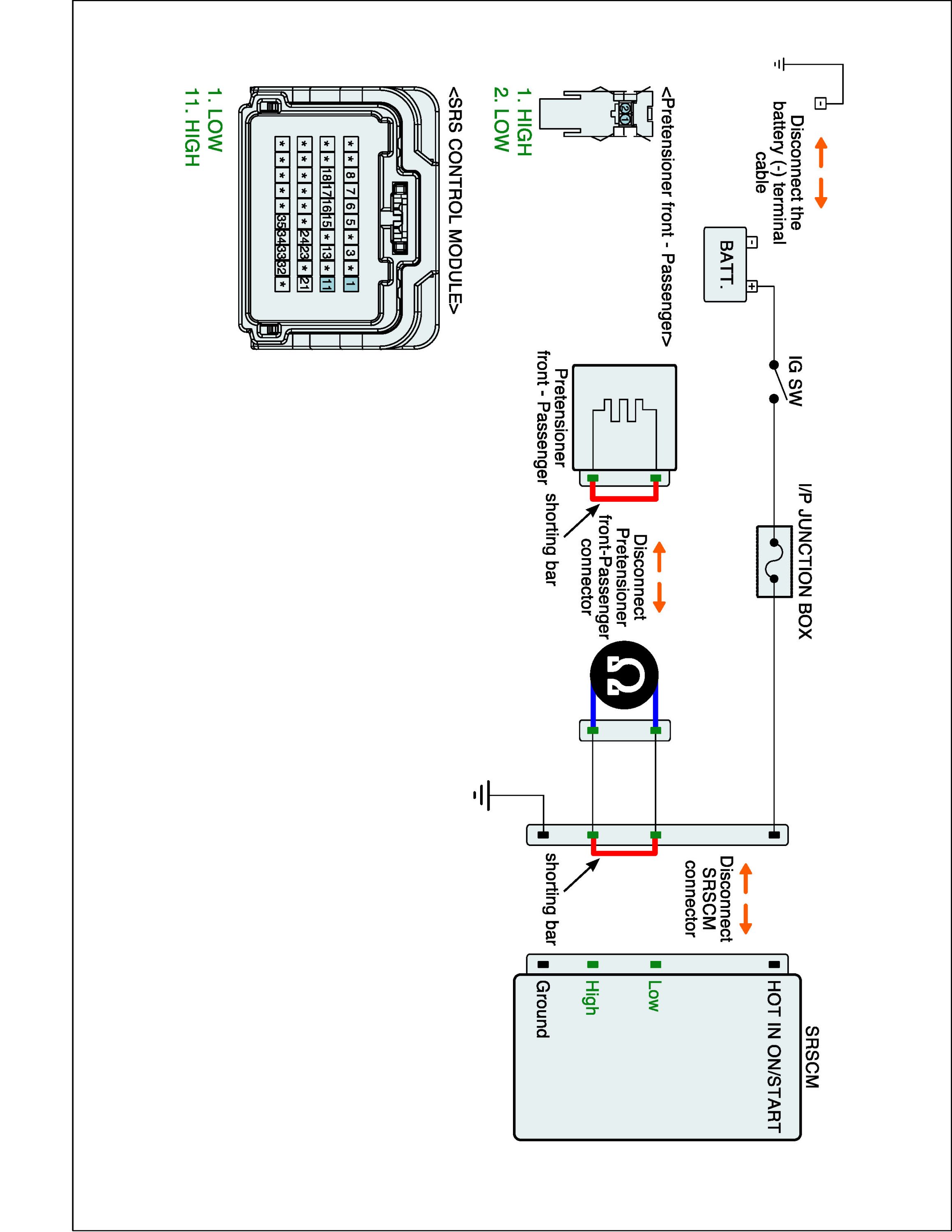 3. Disconnect PBPT connector and SRSCM main harness connector.