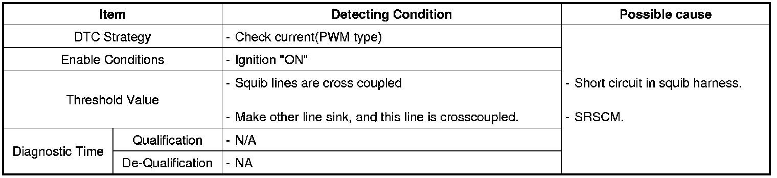 The SRSCM sets DTC B1395 if there's any short circuit in harness of every firing circuit to one another.