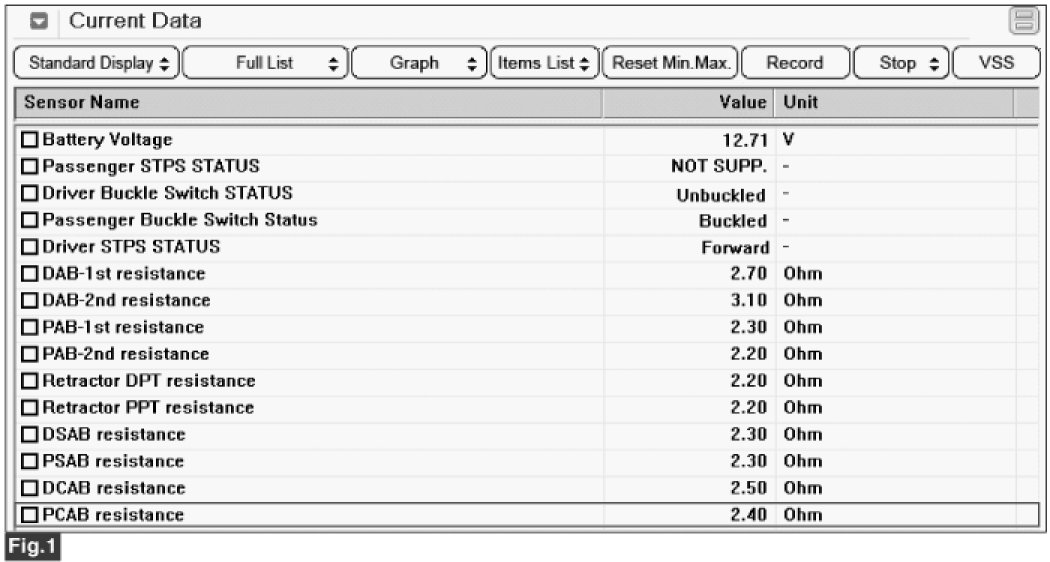 Specification :1.6 Ohms< Resistance of curtain airbag front-Passenger < 6.0 Ohms