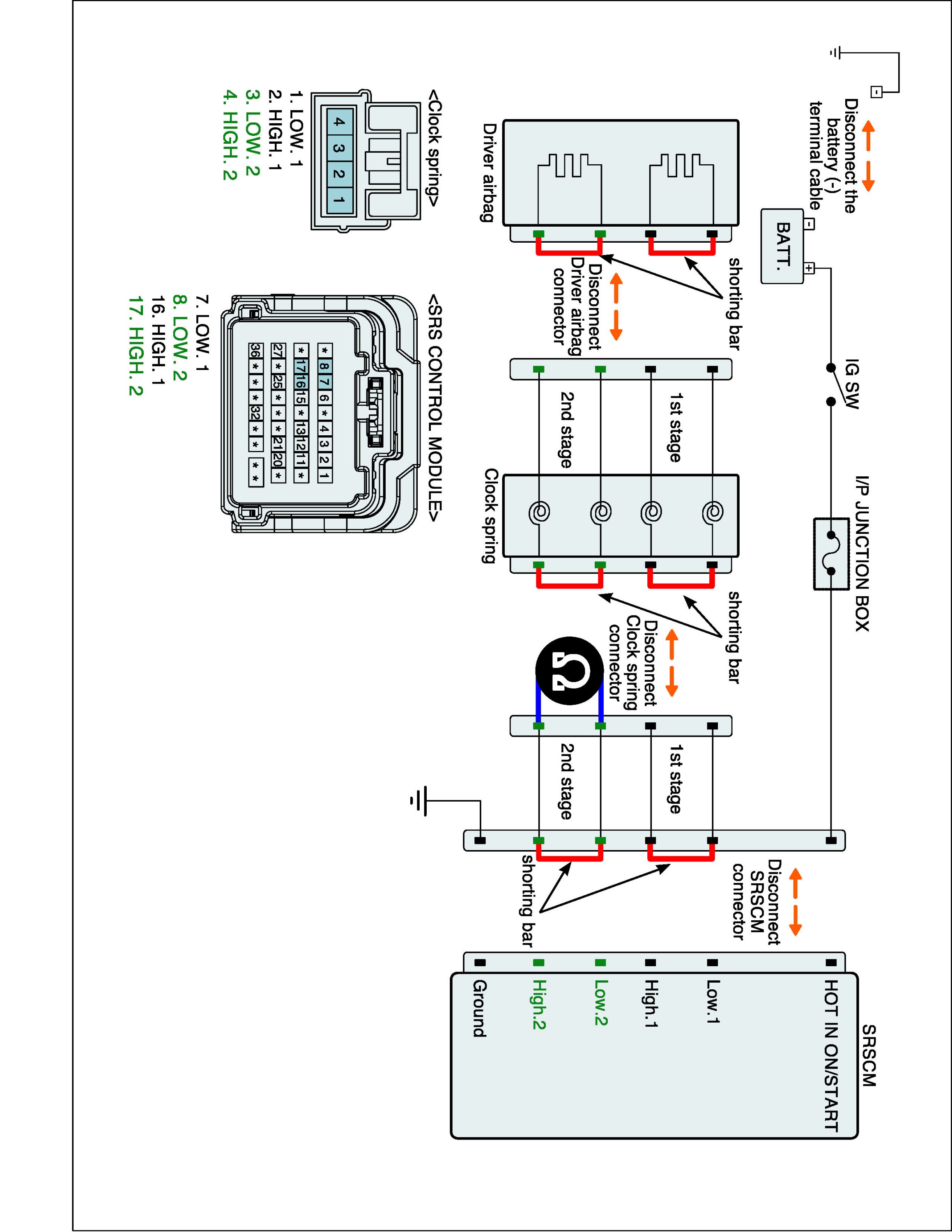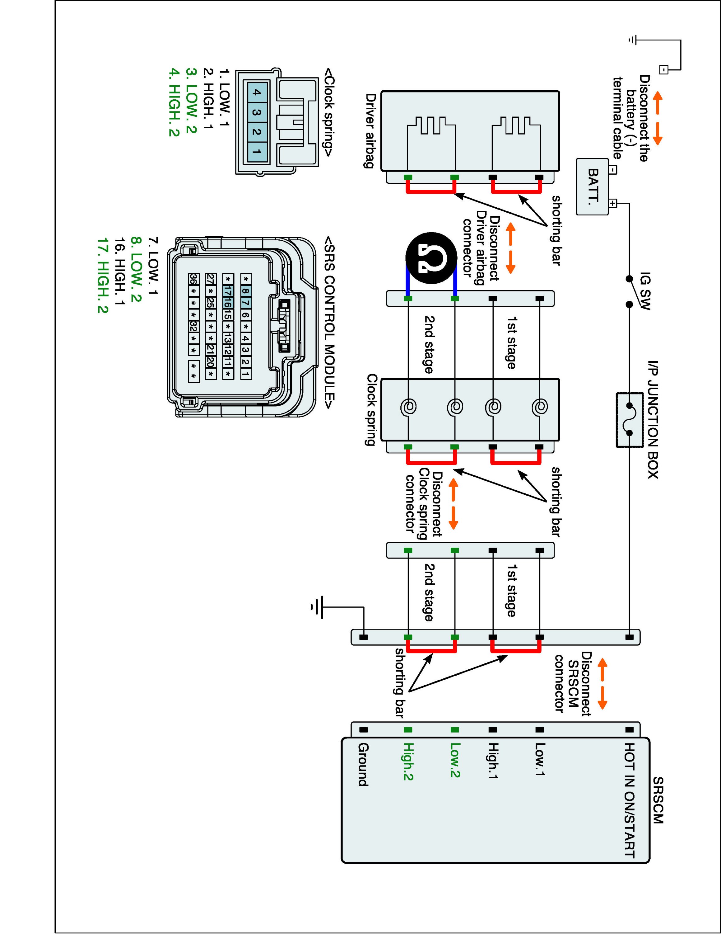 4. Measure resistance between terminal "Low.2" and "High.2" of the Clock Spring harness connector.