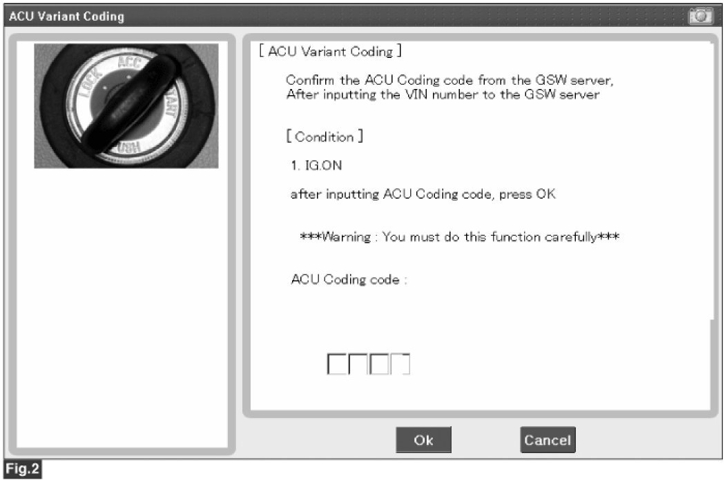 Fig.3) Screen of rechecking ACU CODING code's entering