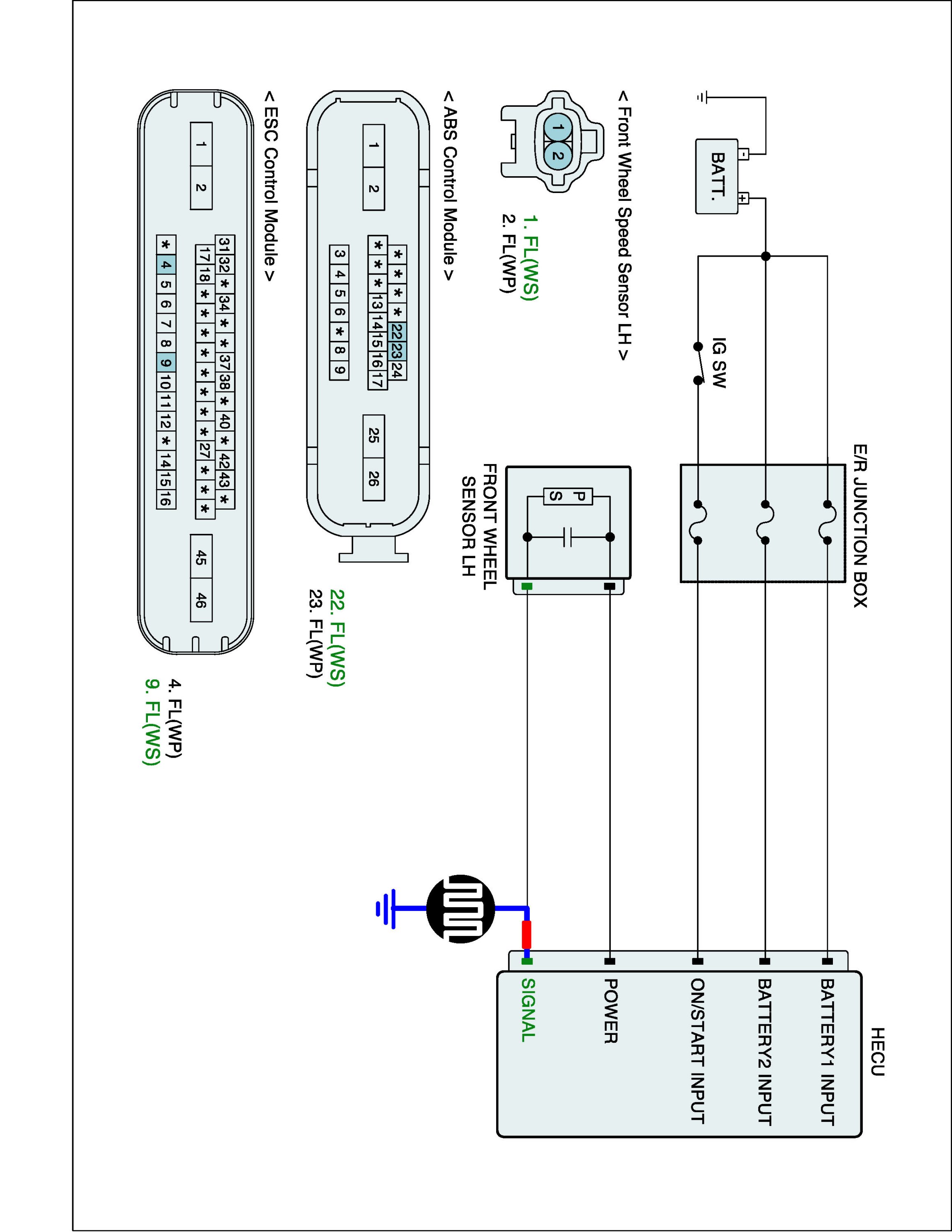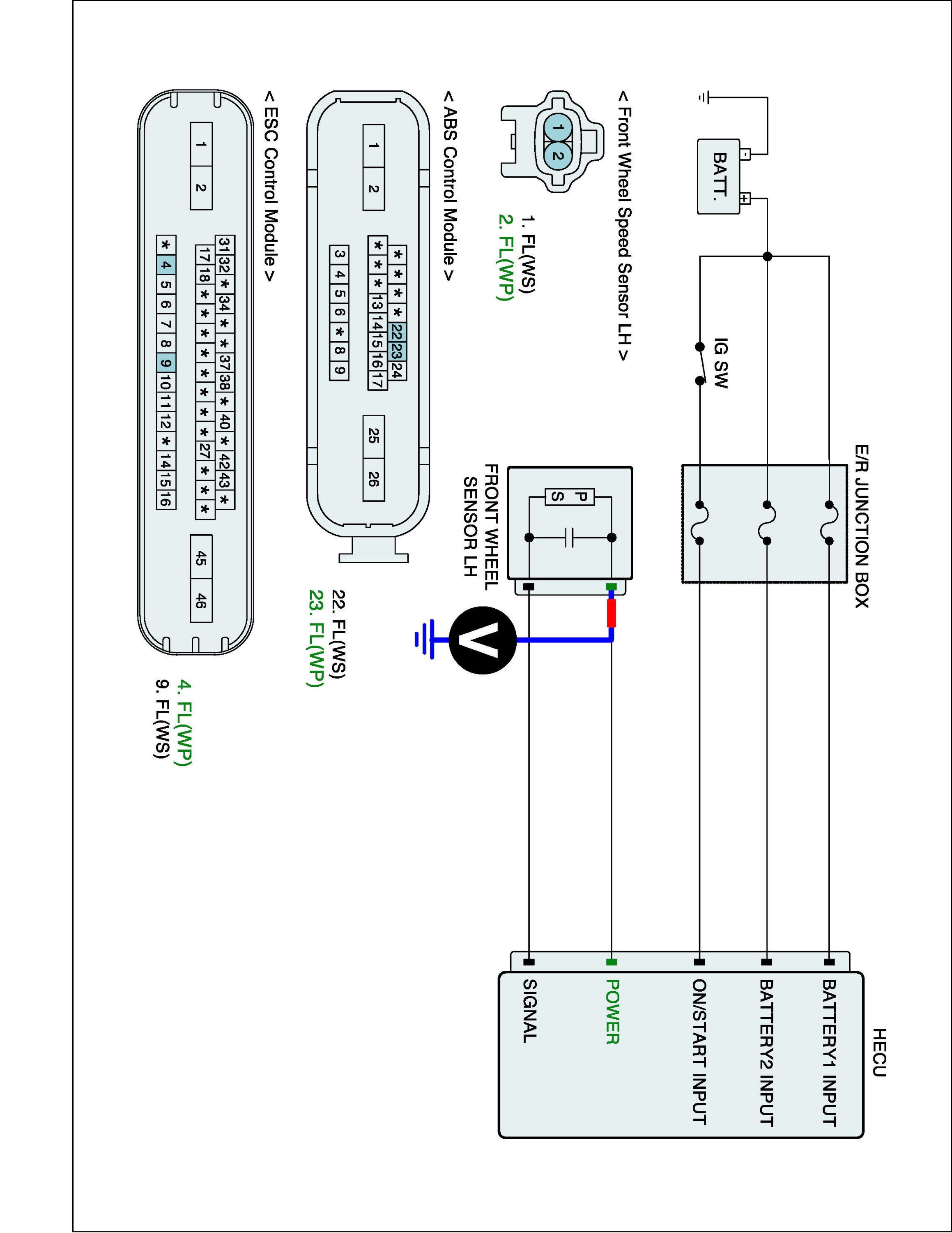 4. Measure waveform between wheel speed sensor signal terminal of the HECU harness connector and chassis ground with oscilloscope.