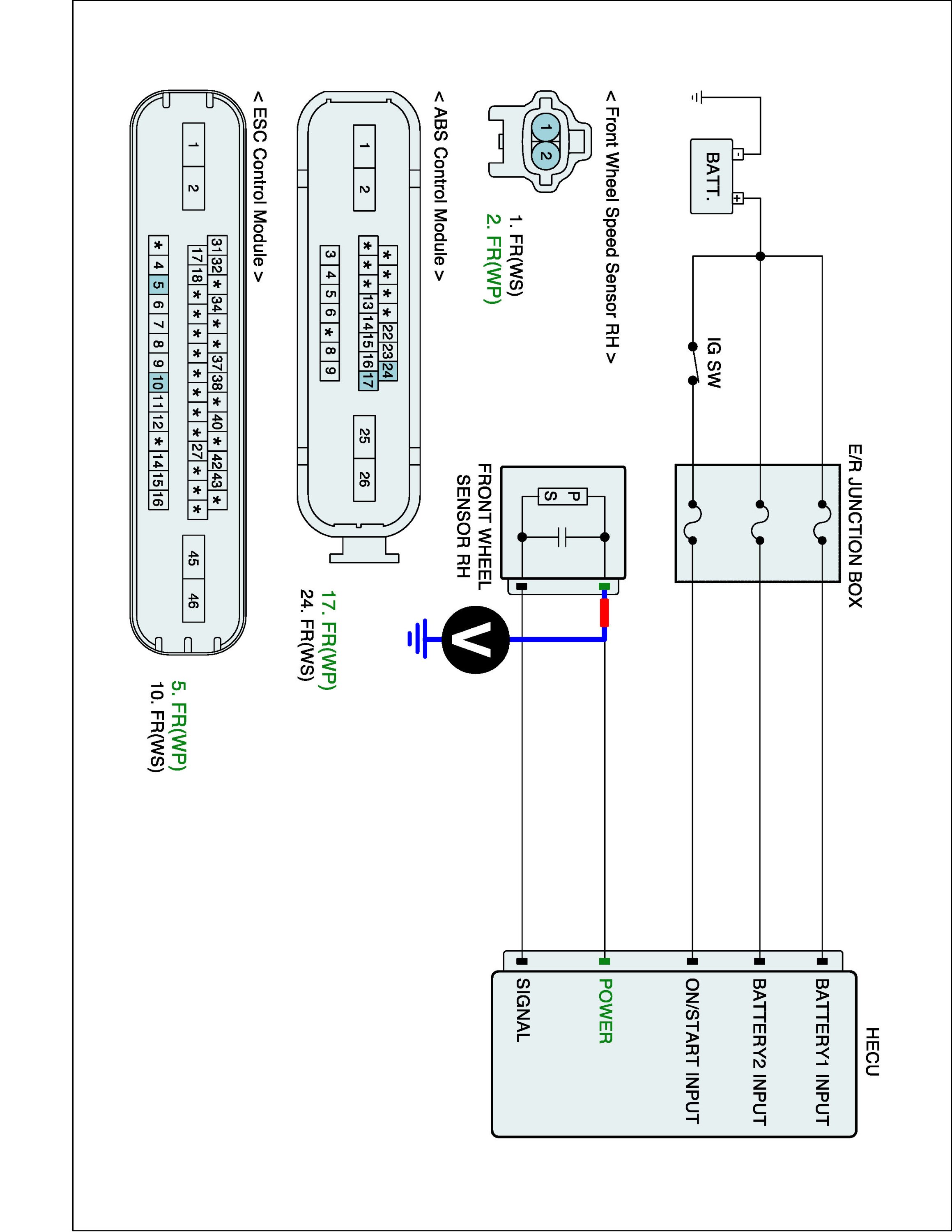 4. Measure waveform between wheel speed sensor signal terminal of the HECU harness connector and chassis ground.