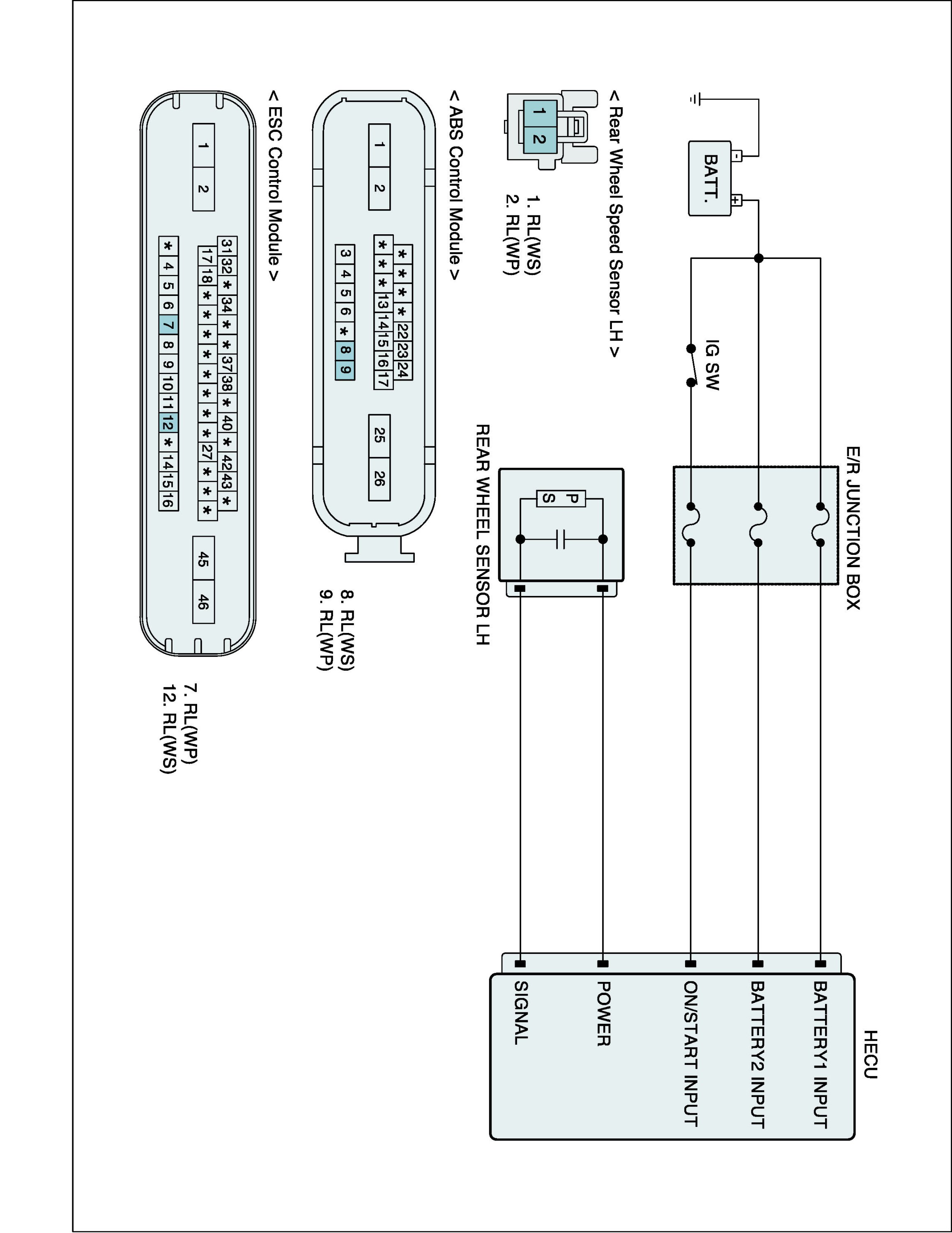 The ABS ECU monitors the wheel speed sensor signal continuously.