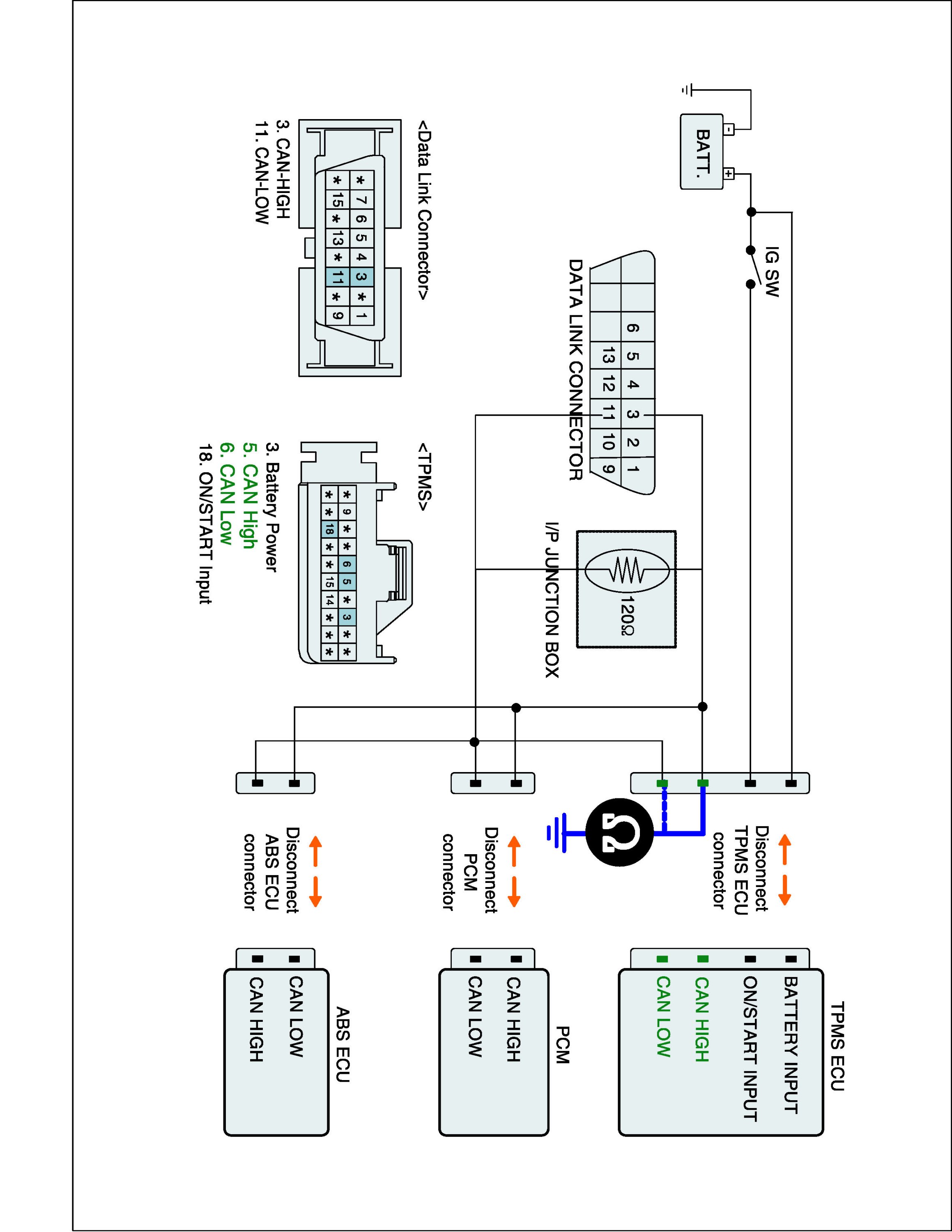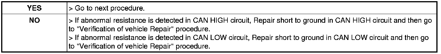 3. Measure resistance between CAN LOW terminal, CAN HIGH terminal of the TPMS ECU harness connector and chassis ground.