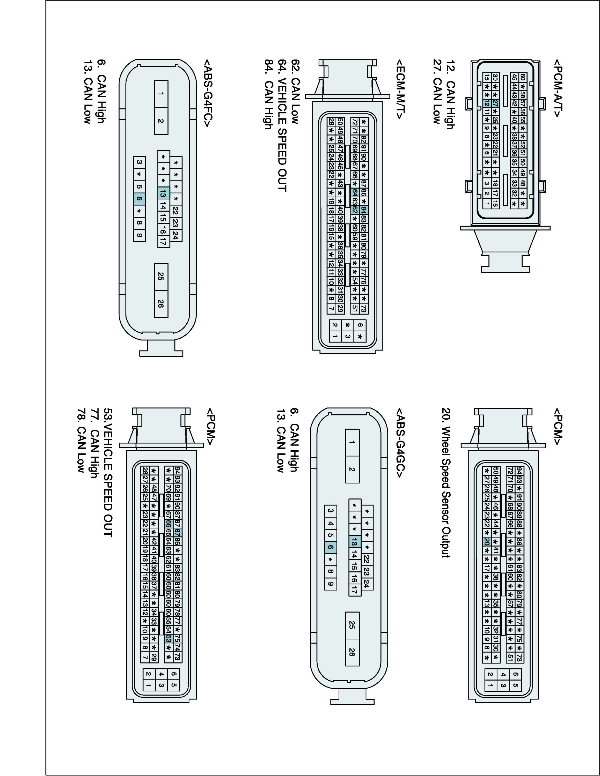 2. Disconnect TPMS ECU, PCM and ABS ECU connector.