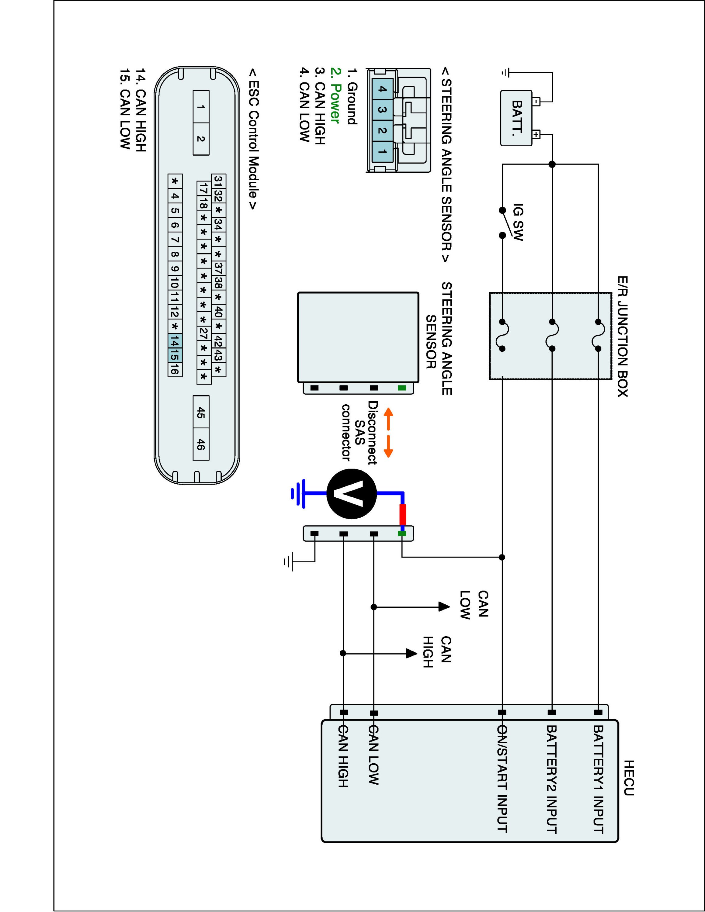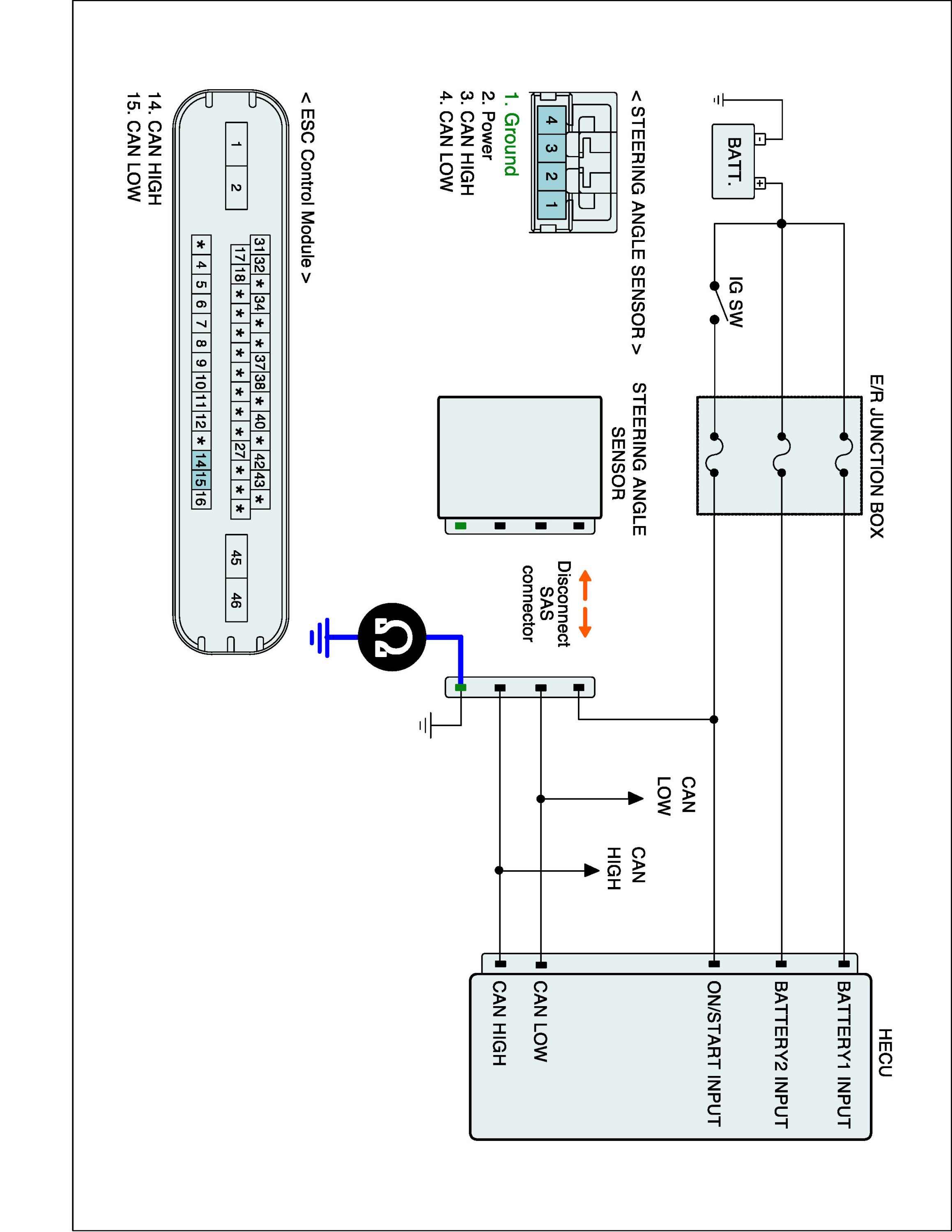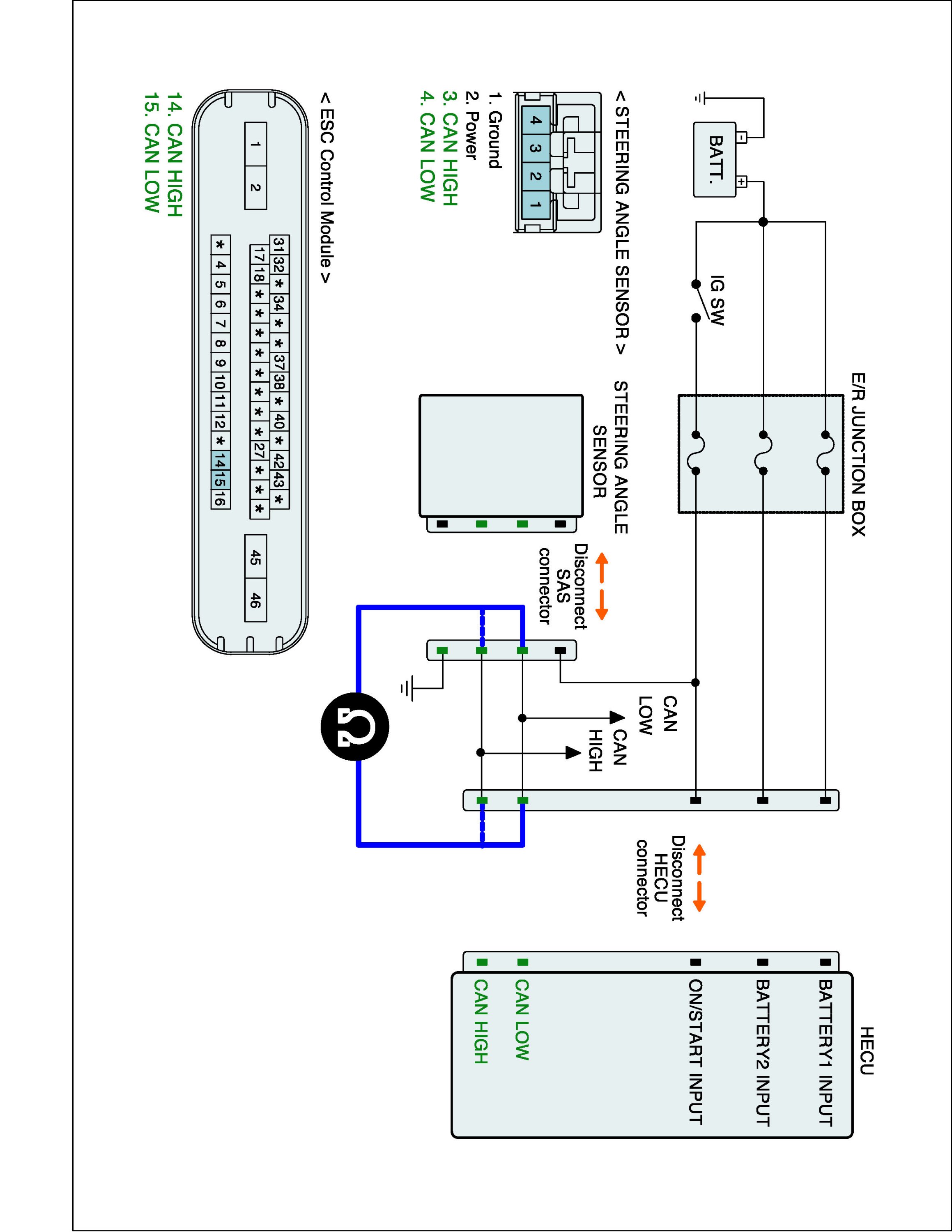 2. Disconnect Steering Angle Sensor connector and HECU connector.