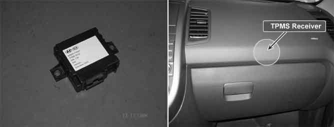 TPM Receiver uses CAN communication line for diagnosis tool, receiving vehicle speed signal, sending signal to instrument cluster.