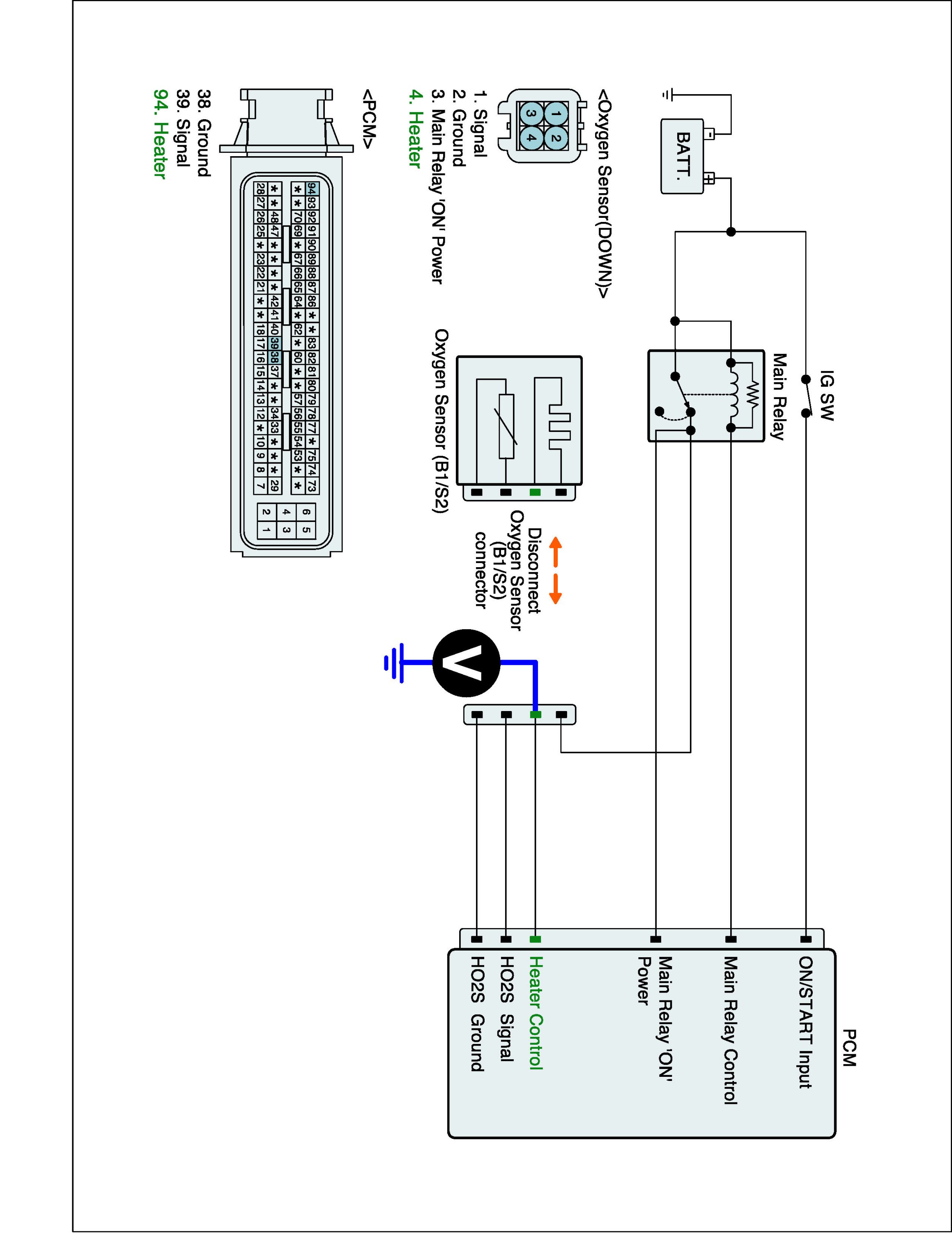 1. Measure voltage between control terminal of the HO2S heater harness connector and chassis ground.