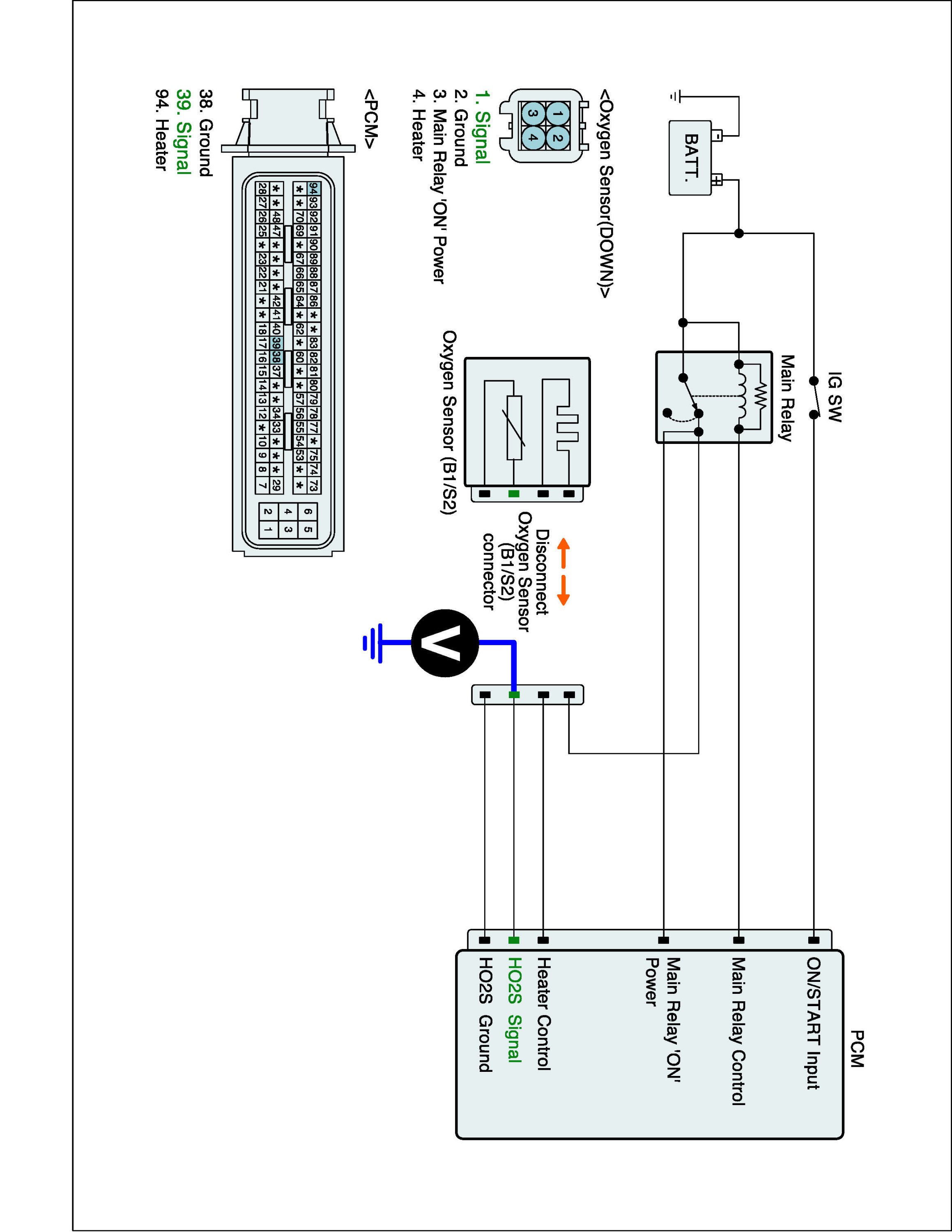4. Measure resistance between signal terminal of HO2S (B1S2) harness connector and chassis ground.