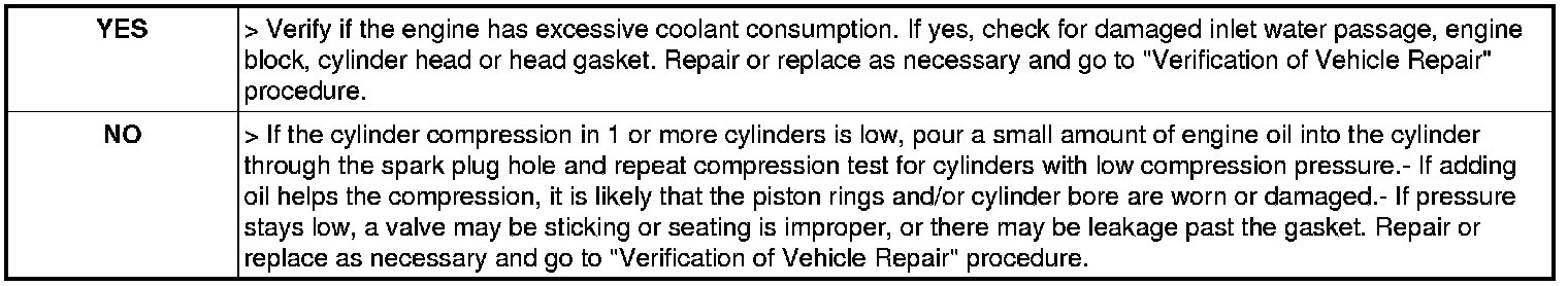 Difference between each cylinder : 100 kPa (1.0 kgf/cm2, 15 psi) or less