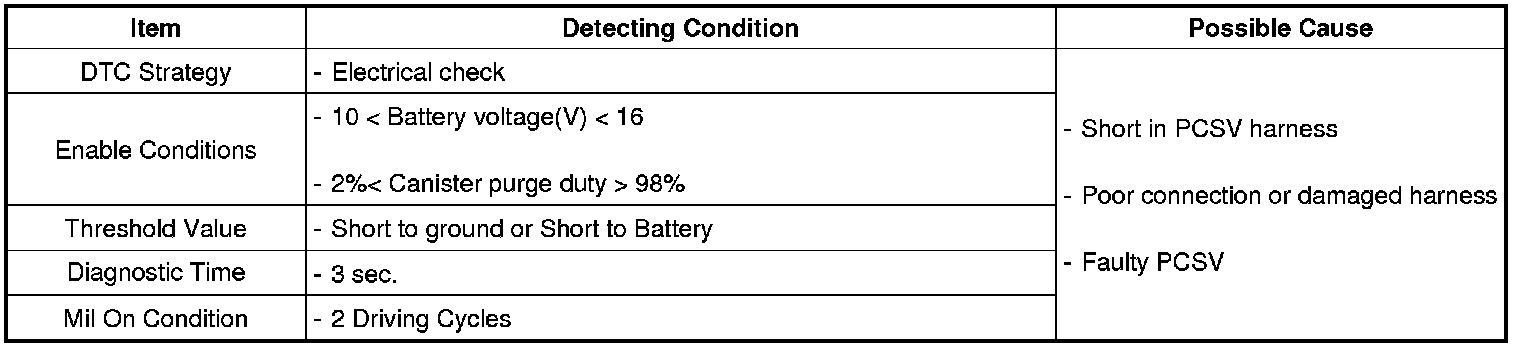 PCM sets DTC P0445 if the PCM detects that the PCSV control circuit is shorted to ground or shorted to battery voltage.