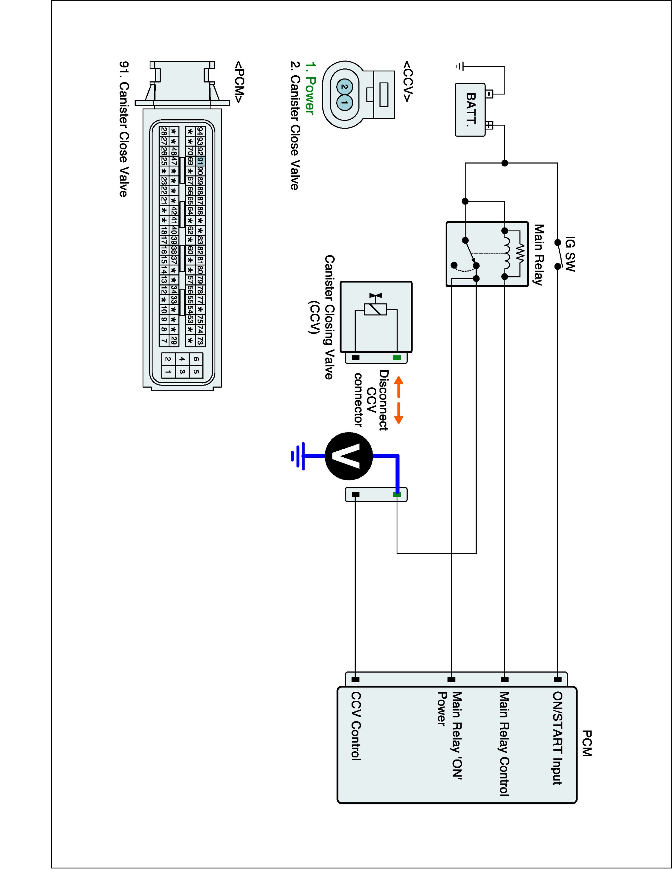 2. Measure voltage between power terminal of the CCV harness connector and chassis ground