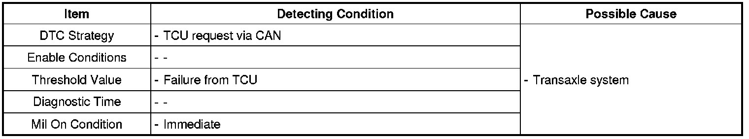 The TCM can request activation of the MIL lamp Via a communication line to the PCM. This is only a request from TCM to PCM to turn the MIL on. The fault code is stored in the TCM. Select Transaxle system on the Scantool and monitor DTC related automatic transaxle system.