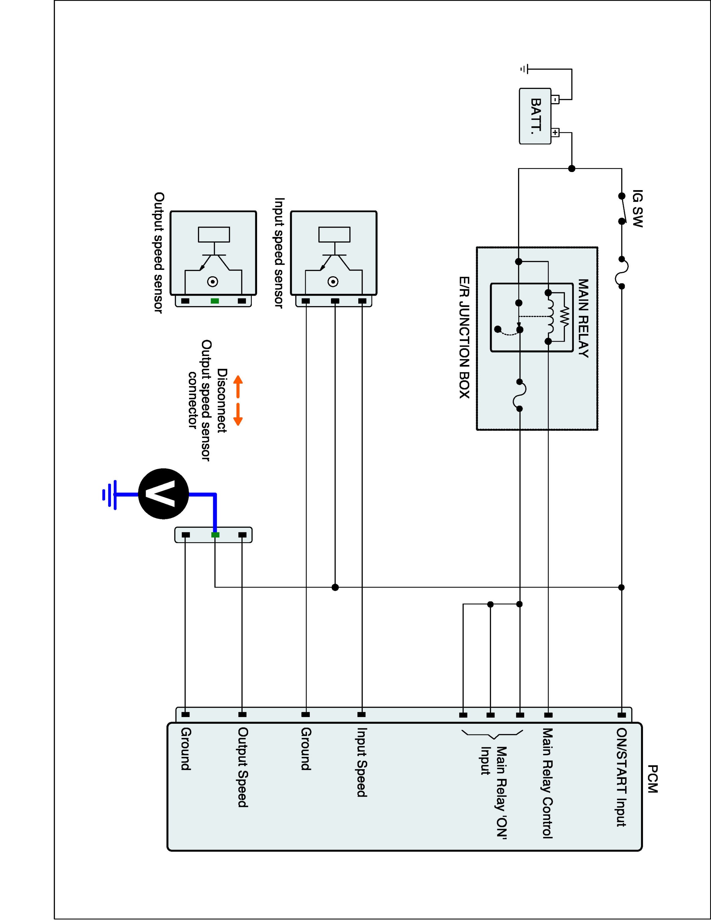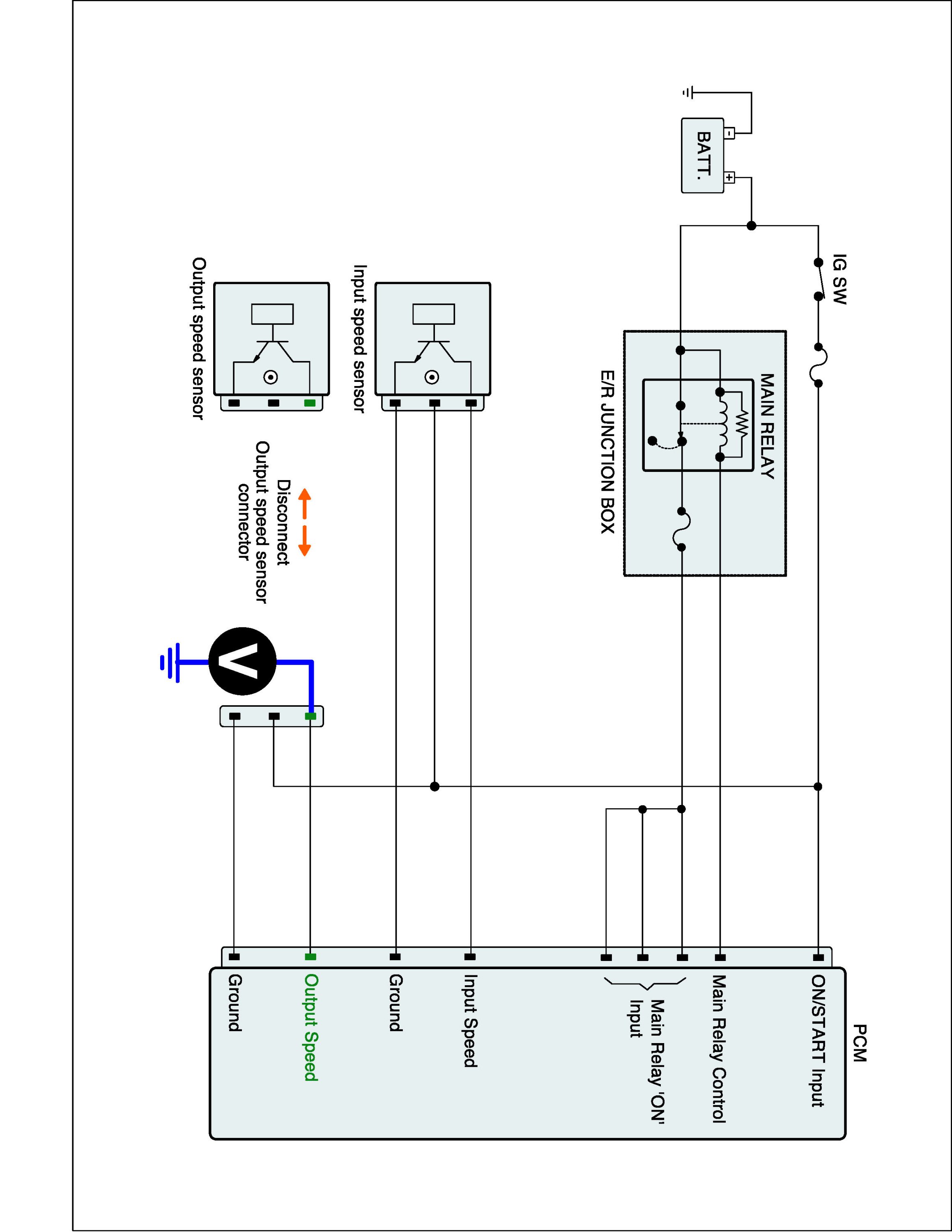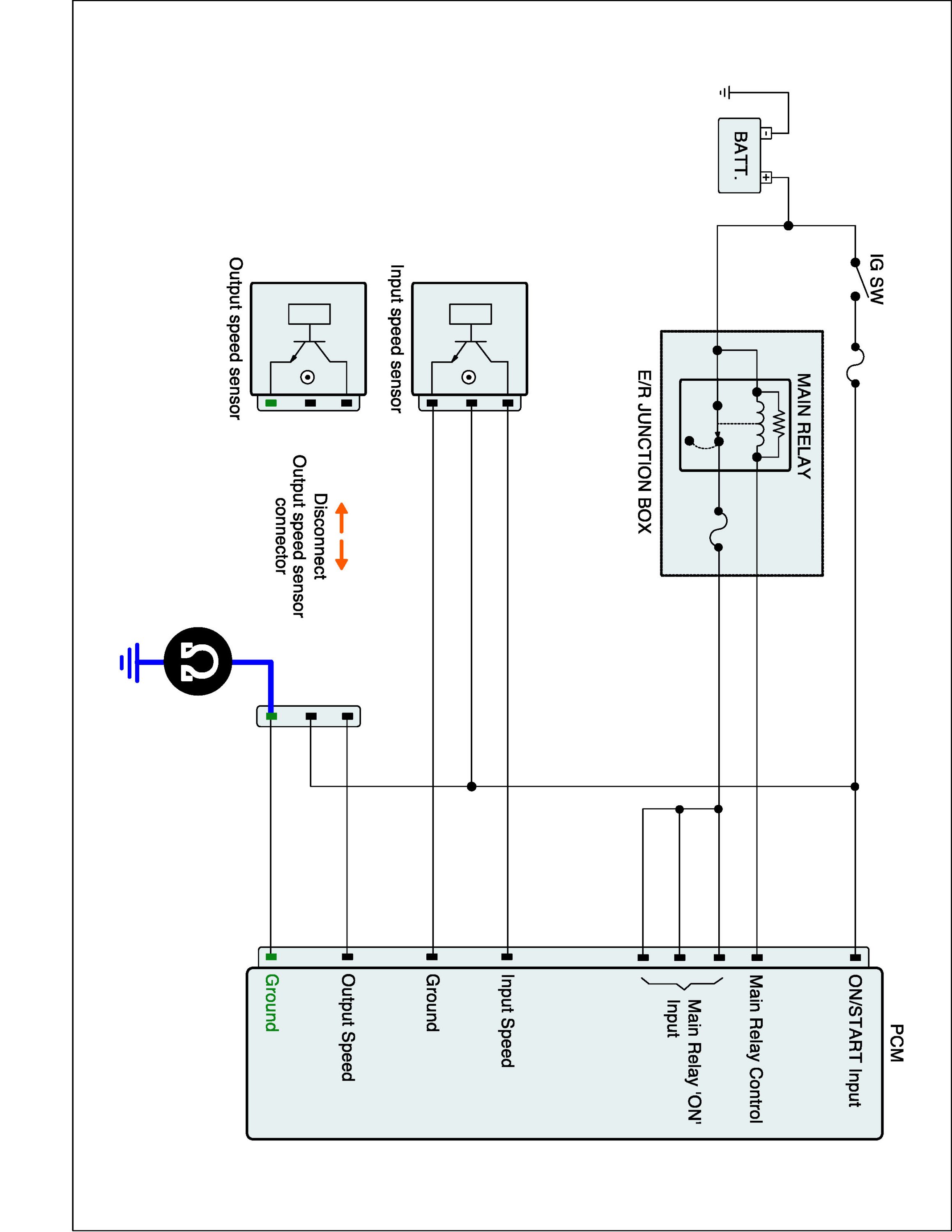 3. Measure resistance between "Ground" terminal of the OUTPUT SPEED SENSOR harness connector and chassis ground.