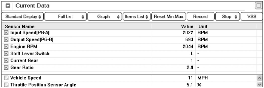 3. Monitor the "INPUT & OUTPUT SPEED SENSOR" parameter on the scantool.
