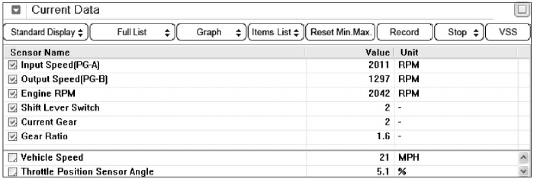 3. Monitor the "INPUT & OUTPUT SPEED SENSOR" parameter on the scantool.