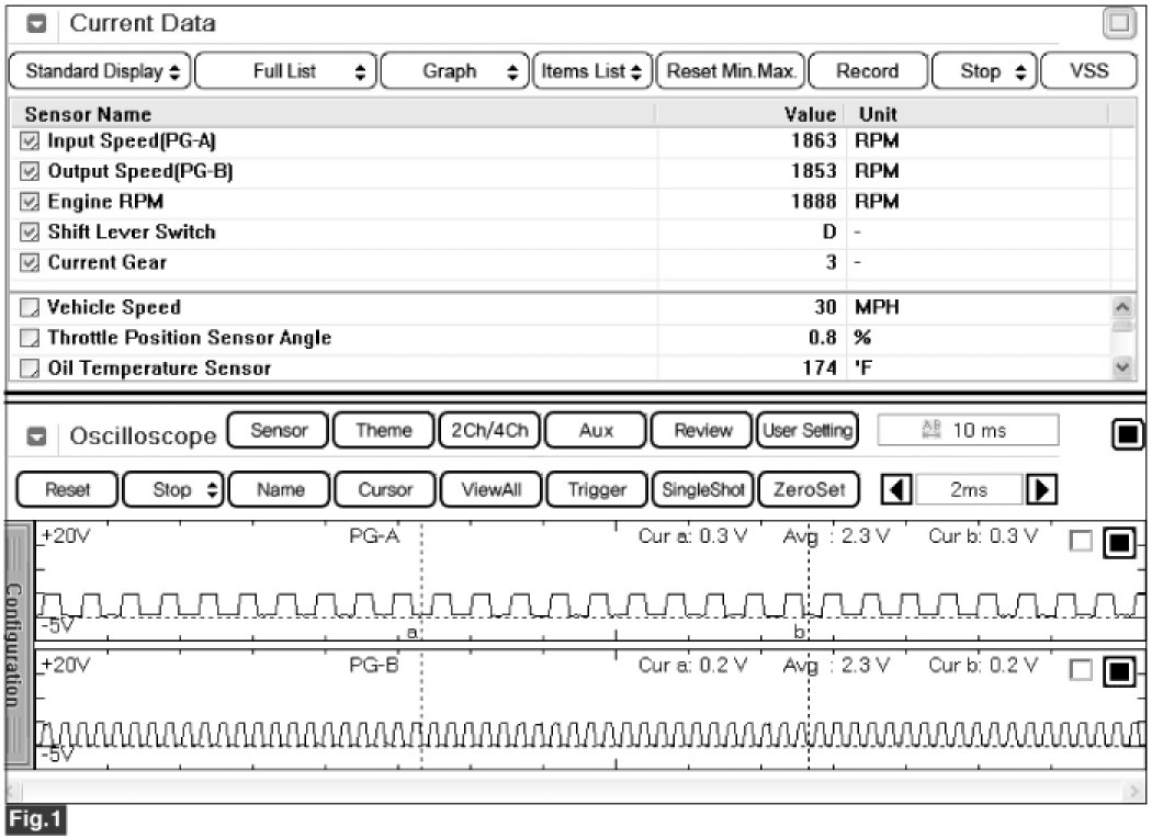 The value of the input shaft speed should be equal to the value of the output shaft speed, when multiplied by the 3rd gear ratio, while the transaxle is engaged in the 3rd gear. For example, if the output speed is 1,000 rpm and the 3rd gear ratio is 1.000, then the input speed is 1000 rpm.