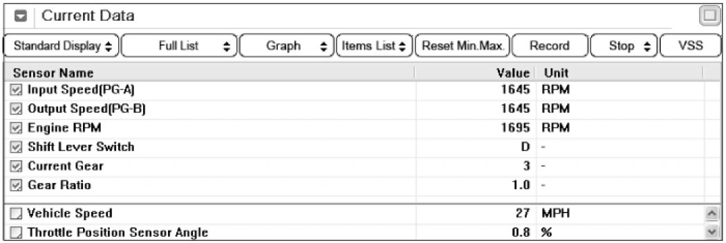 3. Monitor the "INPUT & OUTPUT SPEED SENSOR" parameter on the scantool.