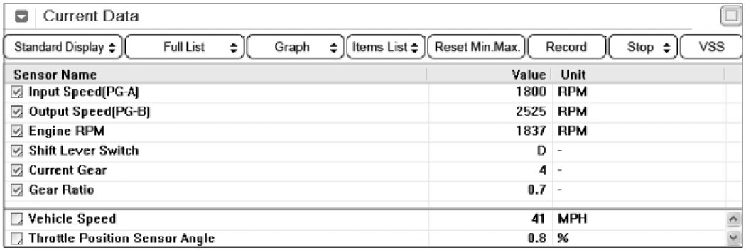 3. Monitor the "INPUT & OUTPUT SPEED SENSOR" parameter on the scantool.