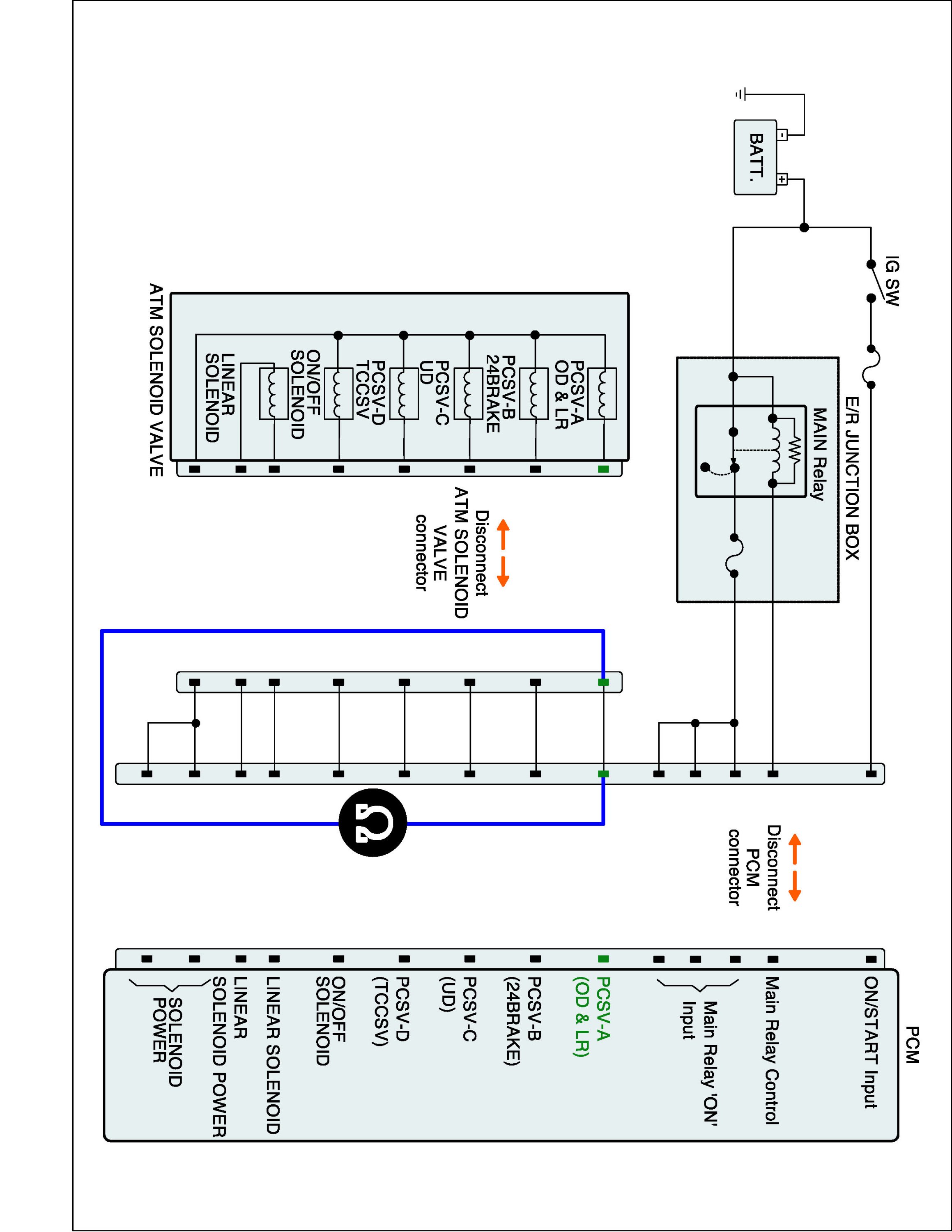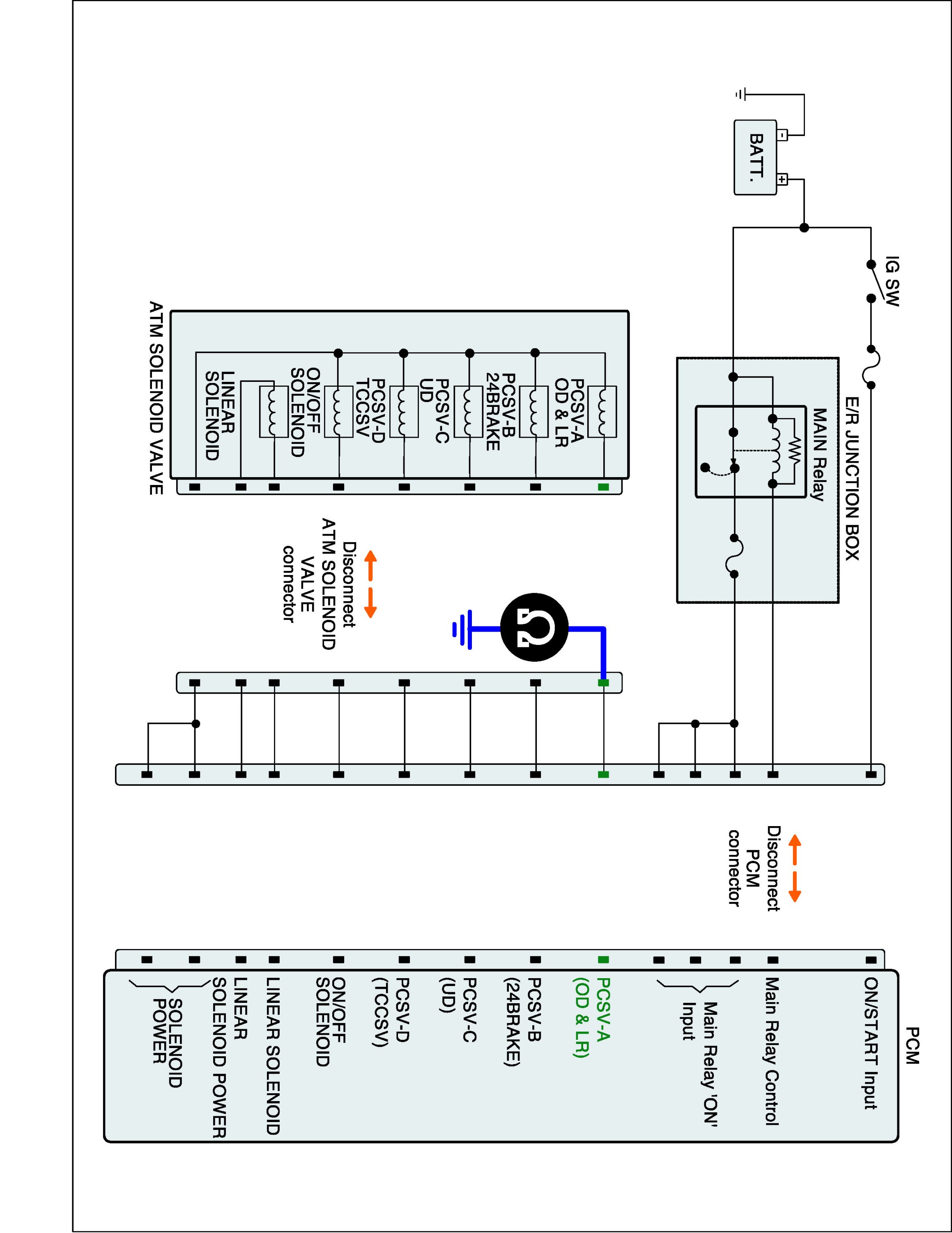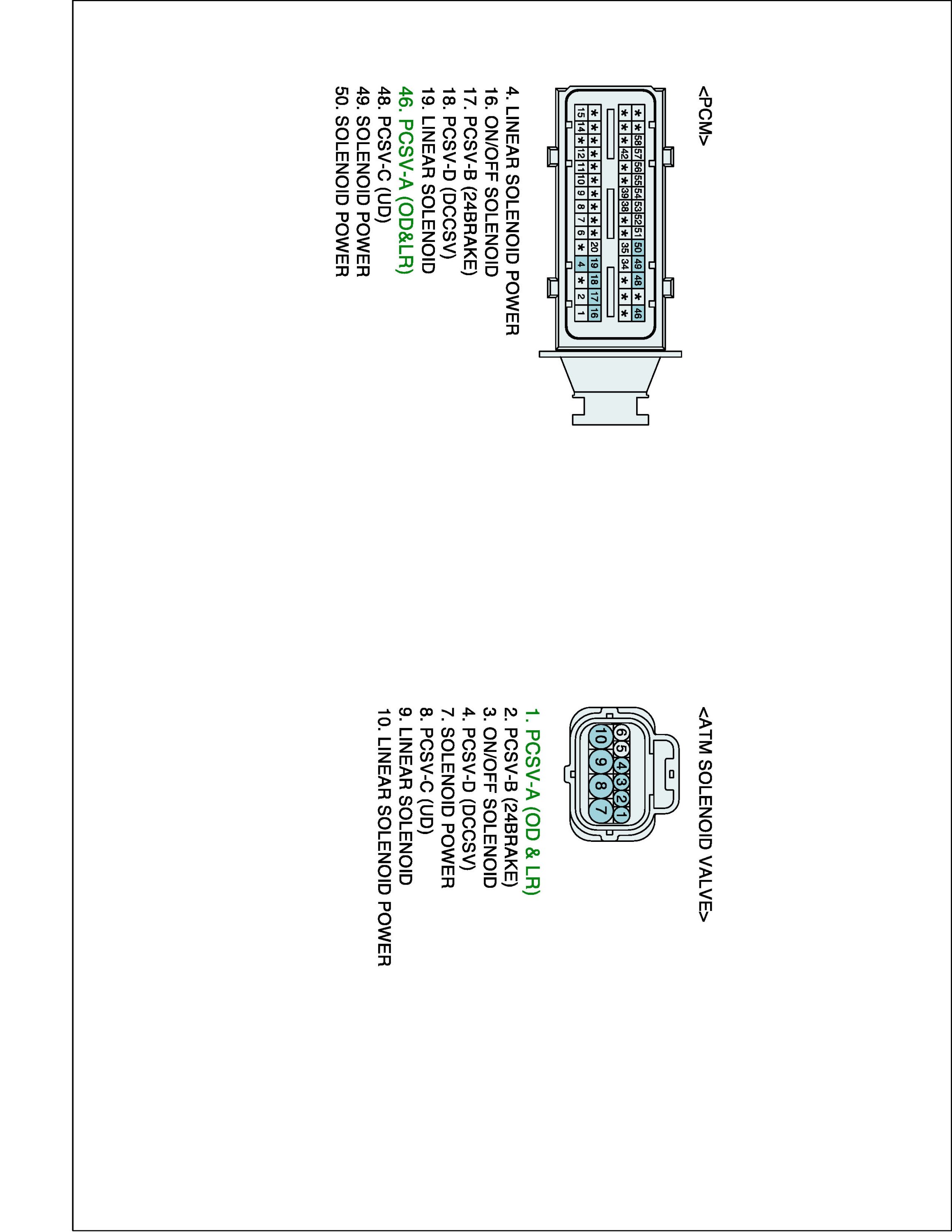 (2) Disconnect "A/T SOLENOID VALVE" connector and "PCM/TCM" connector.