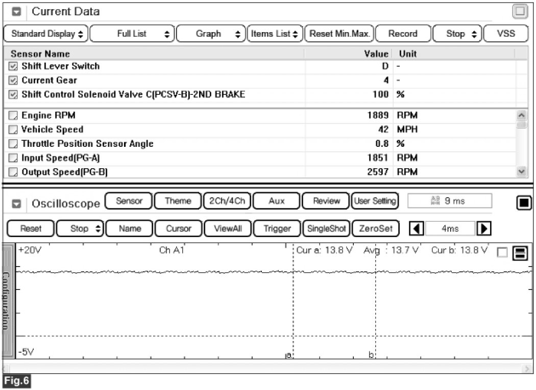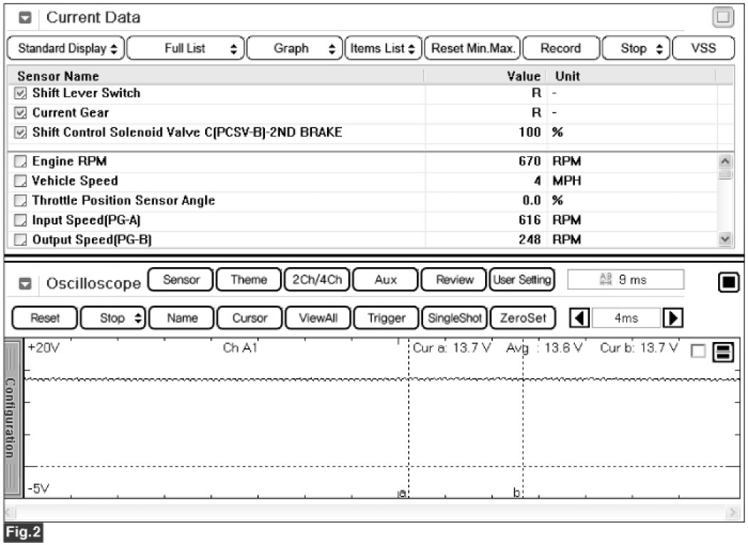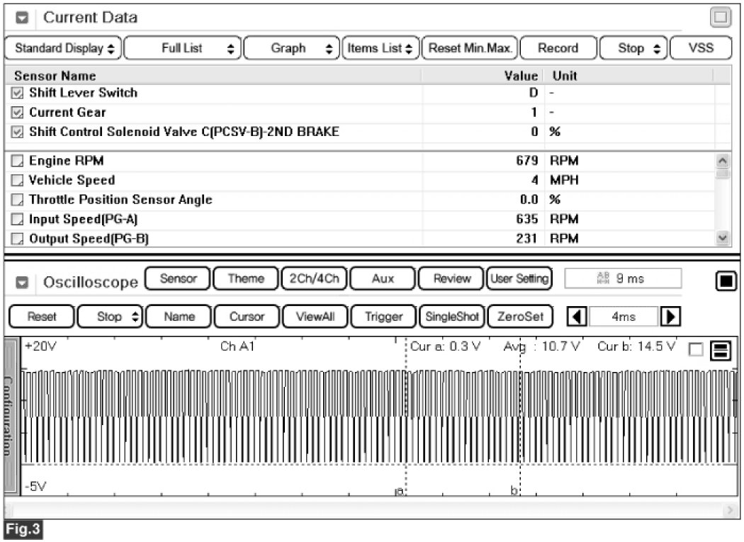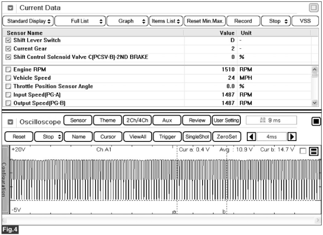 3. Monitor the "PCSV-B (2-4SOLENOID VALVE)" parameter on the GDS