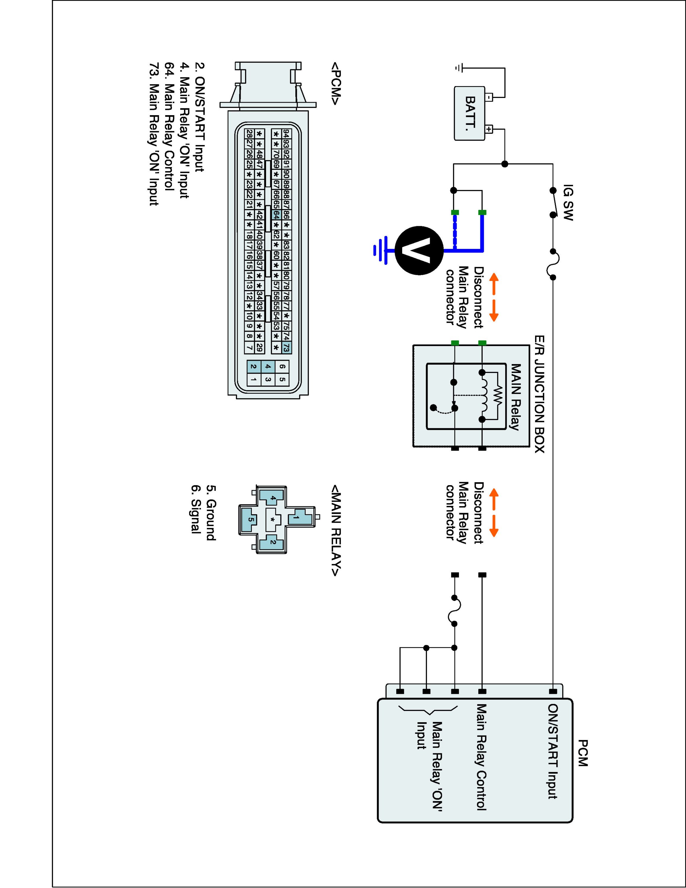3. Measure voltage between "Power supply" terminals of PCM harness connector and chassis ground.