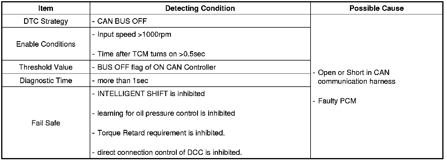 The TCM reads data on the CAN-BUS line and checks whether the data is equal to the data which the TCM sent before. If the data is not the same the TCM decides that either the CAN-BUS line or TCM are malfunctioning and sets this code.