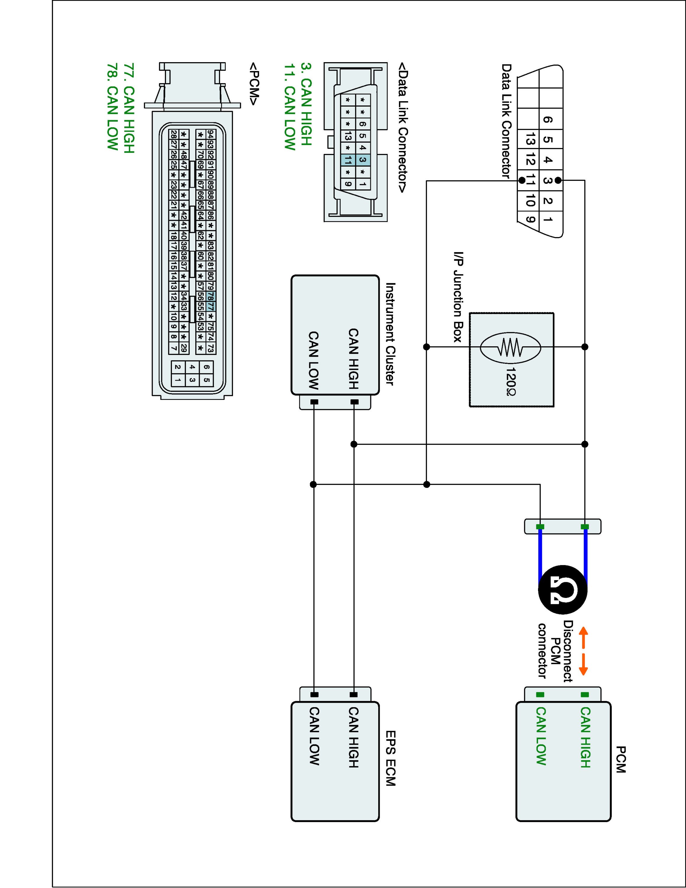 3. Measure resistance between High signal terminal and Low signal terminal of PCM harness connector.
