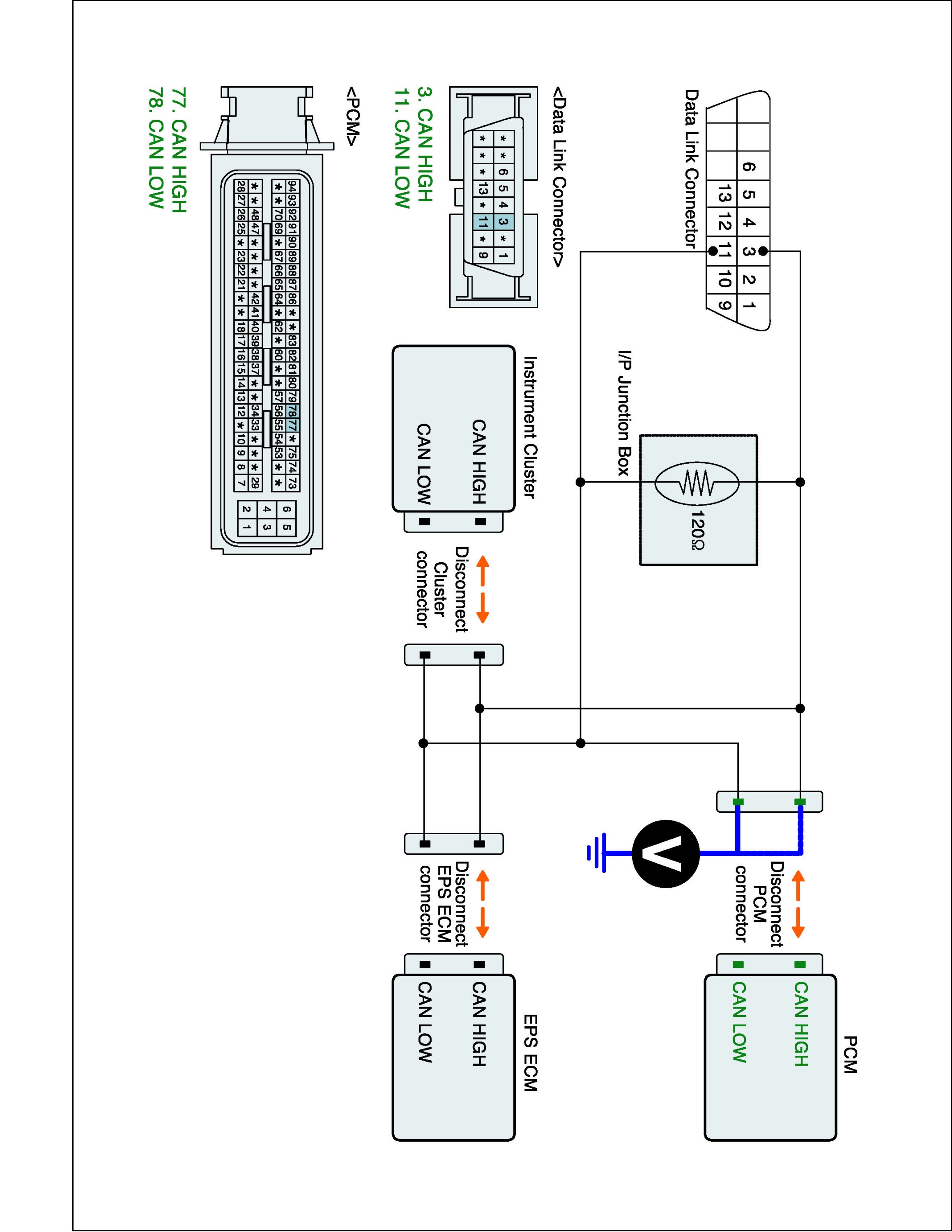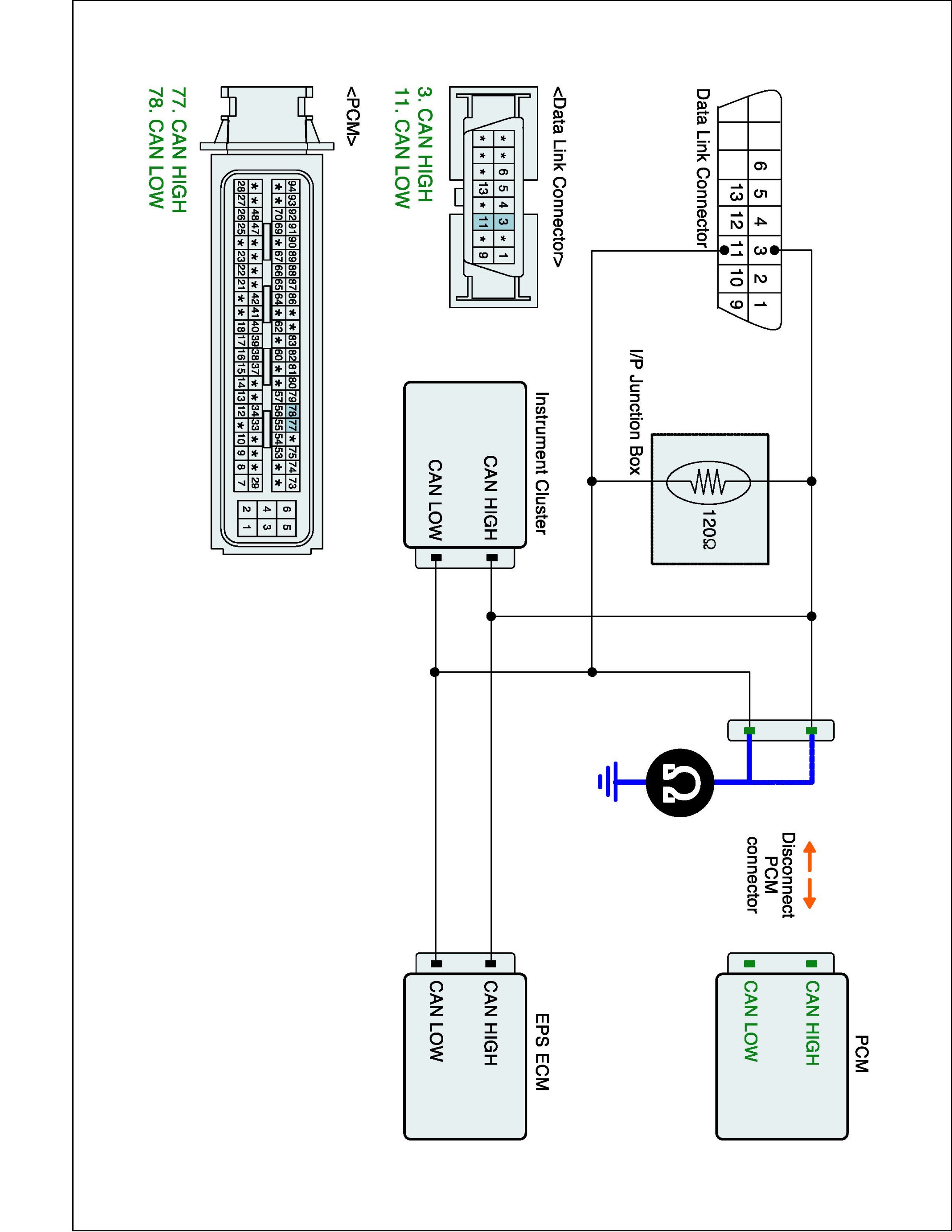 3. Measure voltage between High signal terminal of PCM harness connector and chassis ground.