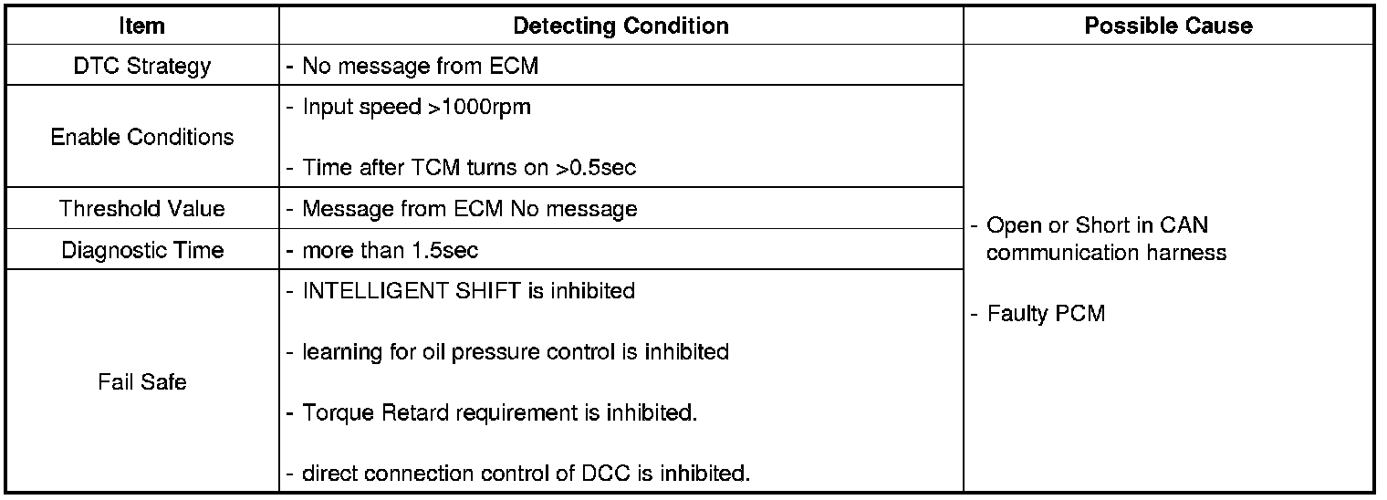 The TCM reads data on the CAN-BUS line and checks whether the data is equal to the data which the TCM sent before. If the data is not the same the TCM decides that either the CAN-BUS line or TCM are malfunctioning and sets this code.