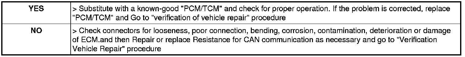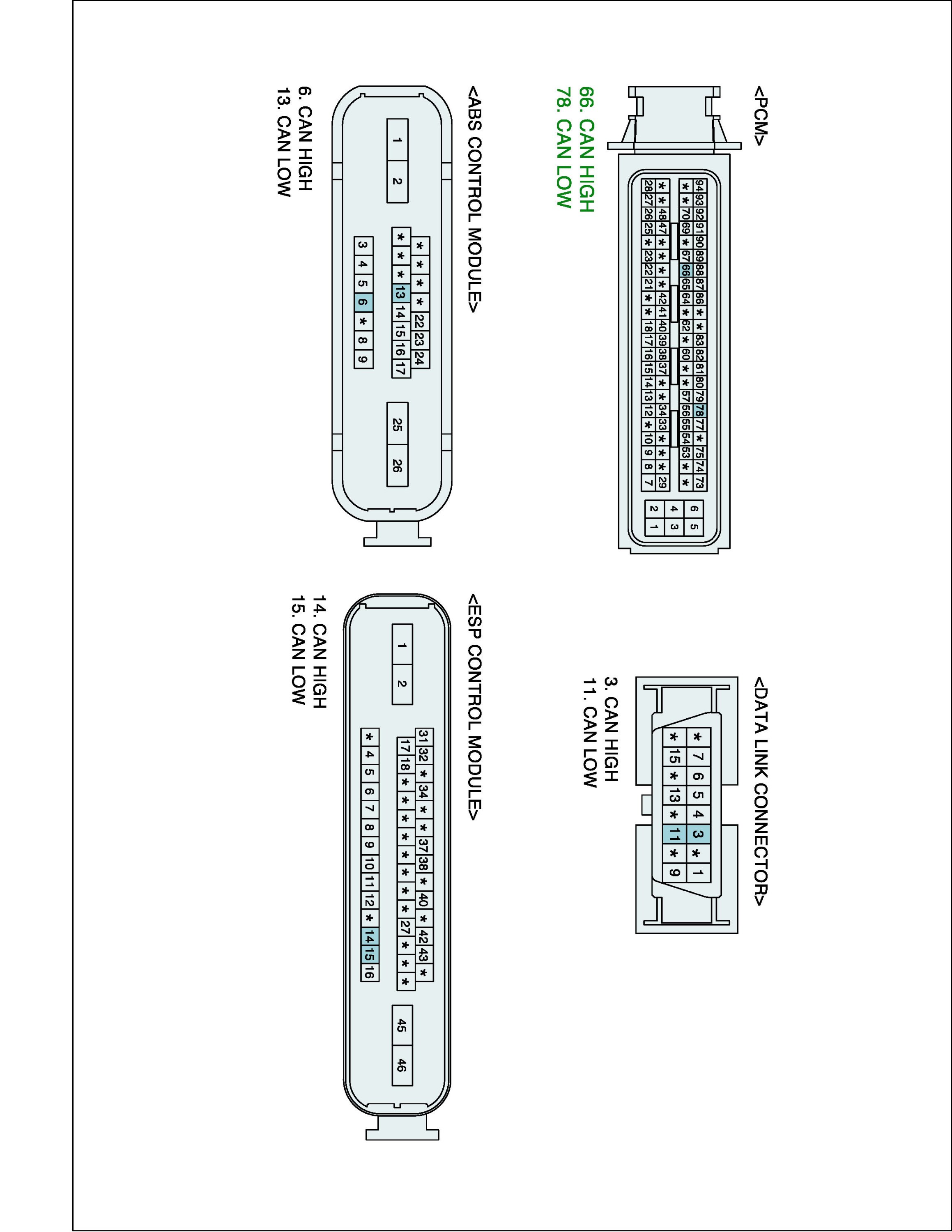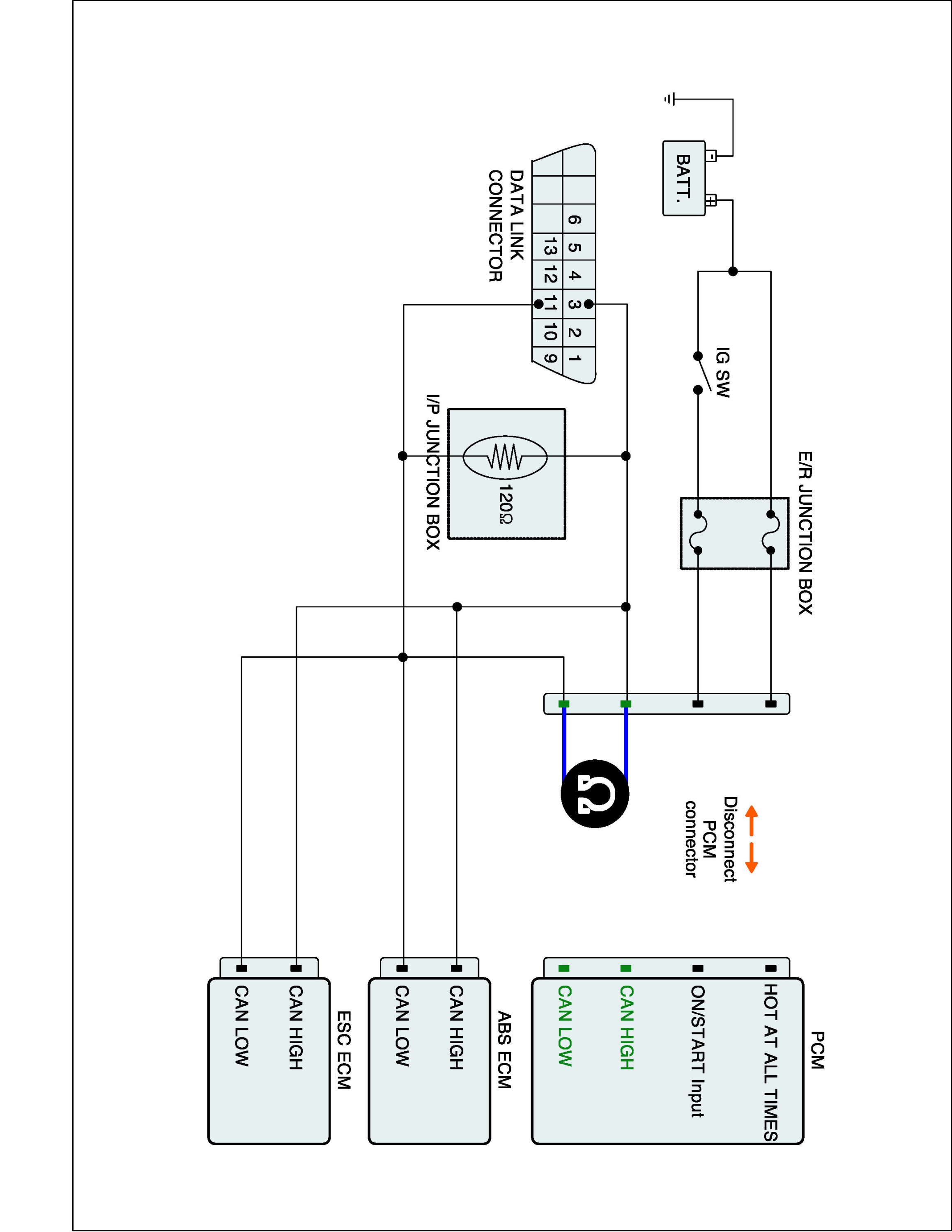 3. Measure resistance between CAN high terminal and CAN low terminal of PCM harness connector.
