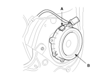 2. Remove the front speaker (B) after removing 4 rivets and connector (A).