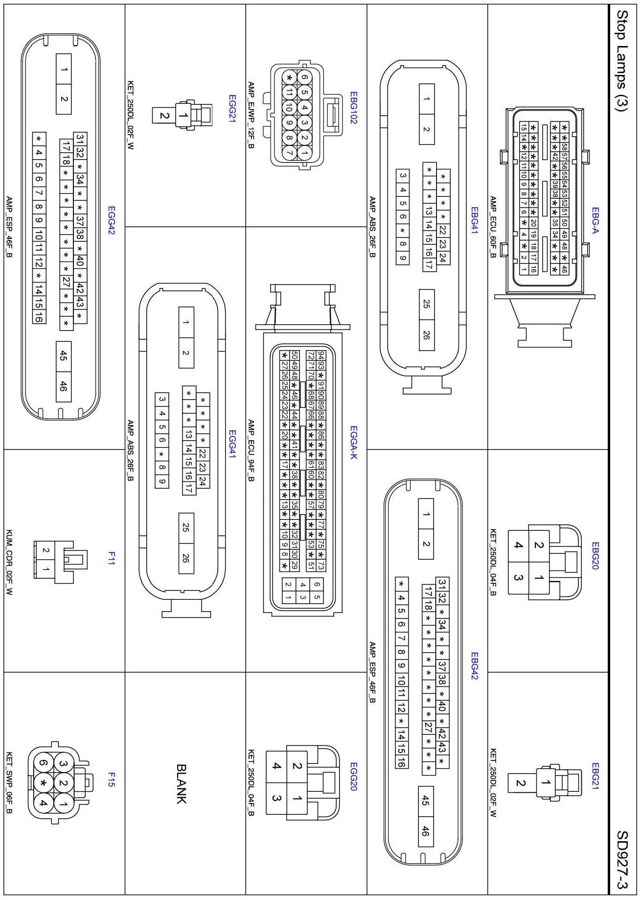 Stop Lamps (4) Connector Pin Outs: