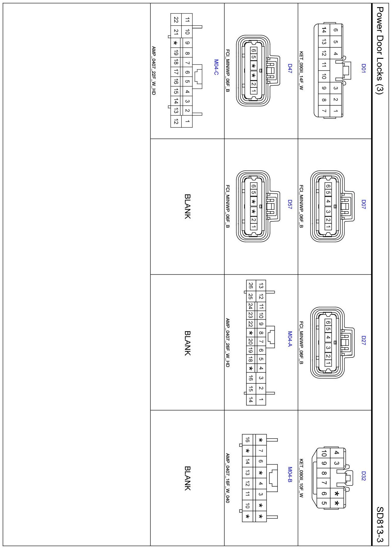 Power Door Locks (3) Connector Pin Outs: