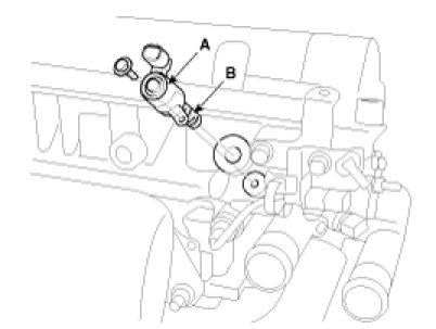 4. Remove the upper radiator hose (A) and lower radiator hose (B).