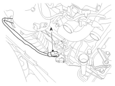 1. Disconnect the rear heated oxygen sensor connector (A).