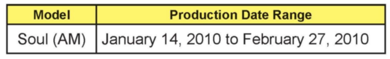 To improve customer satisfaction, Kia is requesting the completion of this Service Action on all affected 2010 Soul (AM) vehicles.