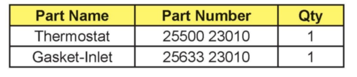 c) Checking the lot number on thermostat: If the Lot number on the thermostat is within the affected range specified below, replace thermostat and gasket.